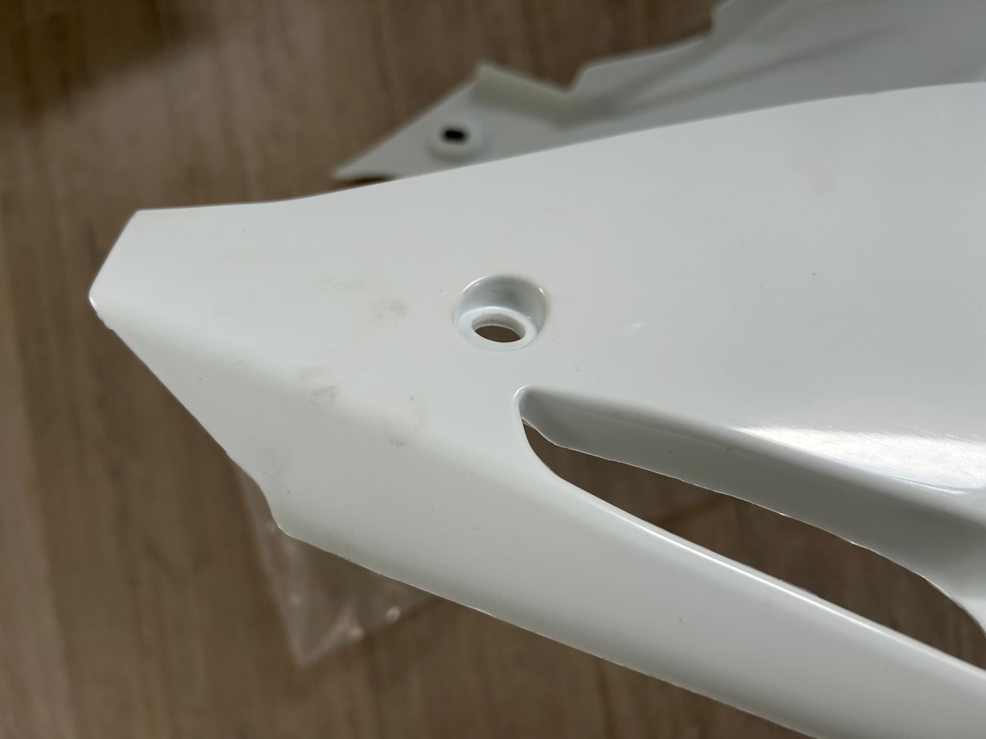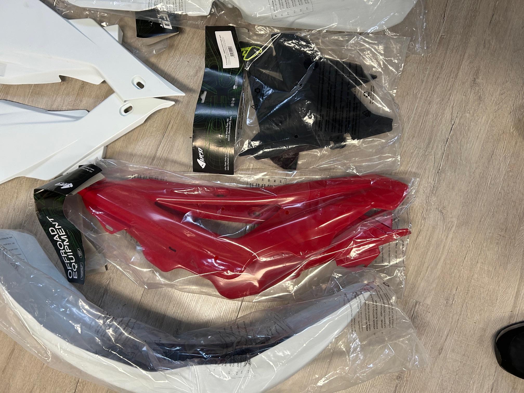 In dieser Auktion gibt es folgenden Artikel zu kaufen: Verkleidungssatz, 2. Wahl (siehe Foto) Modell: passend für Husqvarna CR 125 Bj.: 09 - 13 (2-Takt) Lieferumfang: Tankverkleidung oben Tankverkleidung unten Seitenverkleidung links und rechts Schutzblech vorne Schutzblech hinten Artikelzustand: Retoureartikel mit Anbauspuren, 2.Wahl! Hierbei handelt es sich um kein Originalteil! Bei Unklarheiten oder Fragen bitte erst E-Mail schreiben.