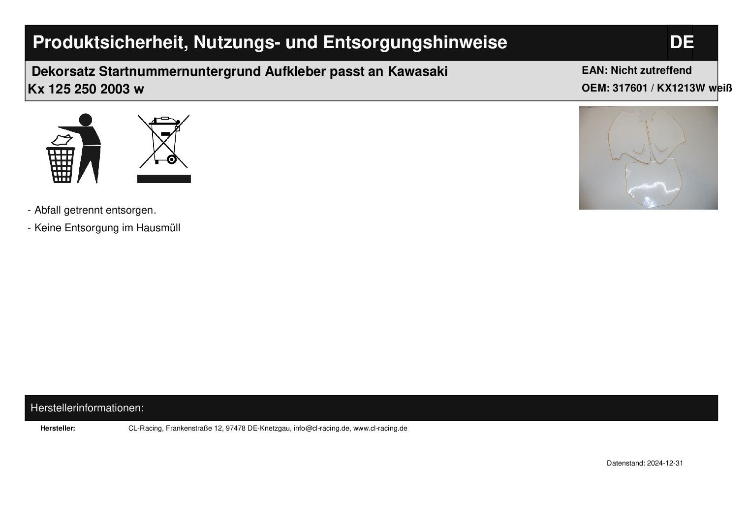 • Dekorsatz Startnummernuntergrund Aufkleber passt an Kawasaki Kx 125 250 2003 w