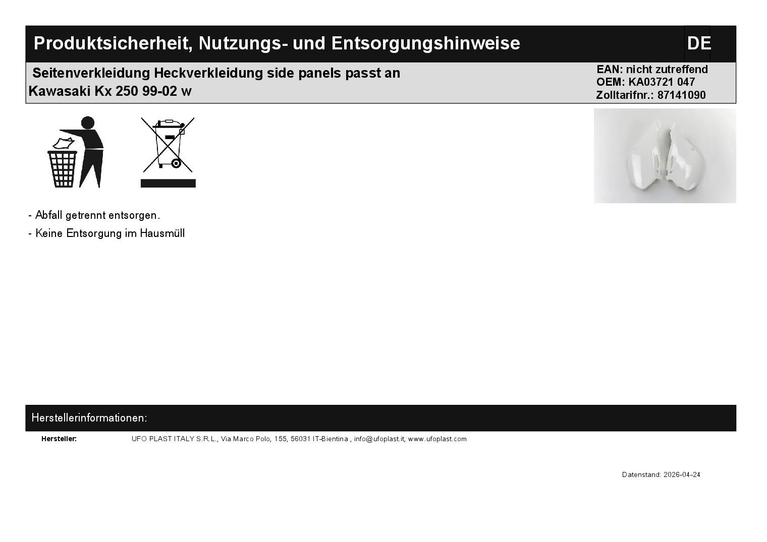 In dieser Auktion gibt es folgenden Artikel zu kaufen: Seitenverkleidung (siehe Foto) Fahrzeug: passend für Kawasaki KX 125, 250 Bj.: 99 - 02 Lieferumfang: siehe Foto Artikelzustand: neu aus Geschäftsauflösung, mit leichten Lagerspuren; Zustand siehe Foto Bei Unklarheiten oder Fragen bitte erst E-Mail schreiben.