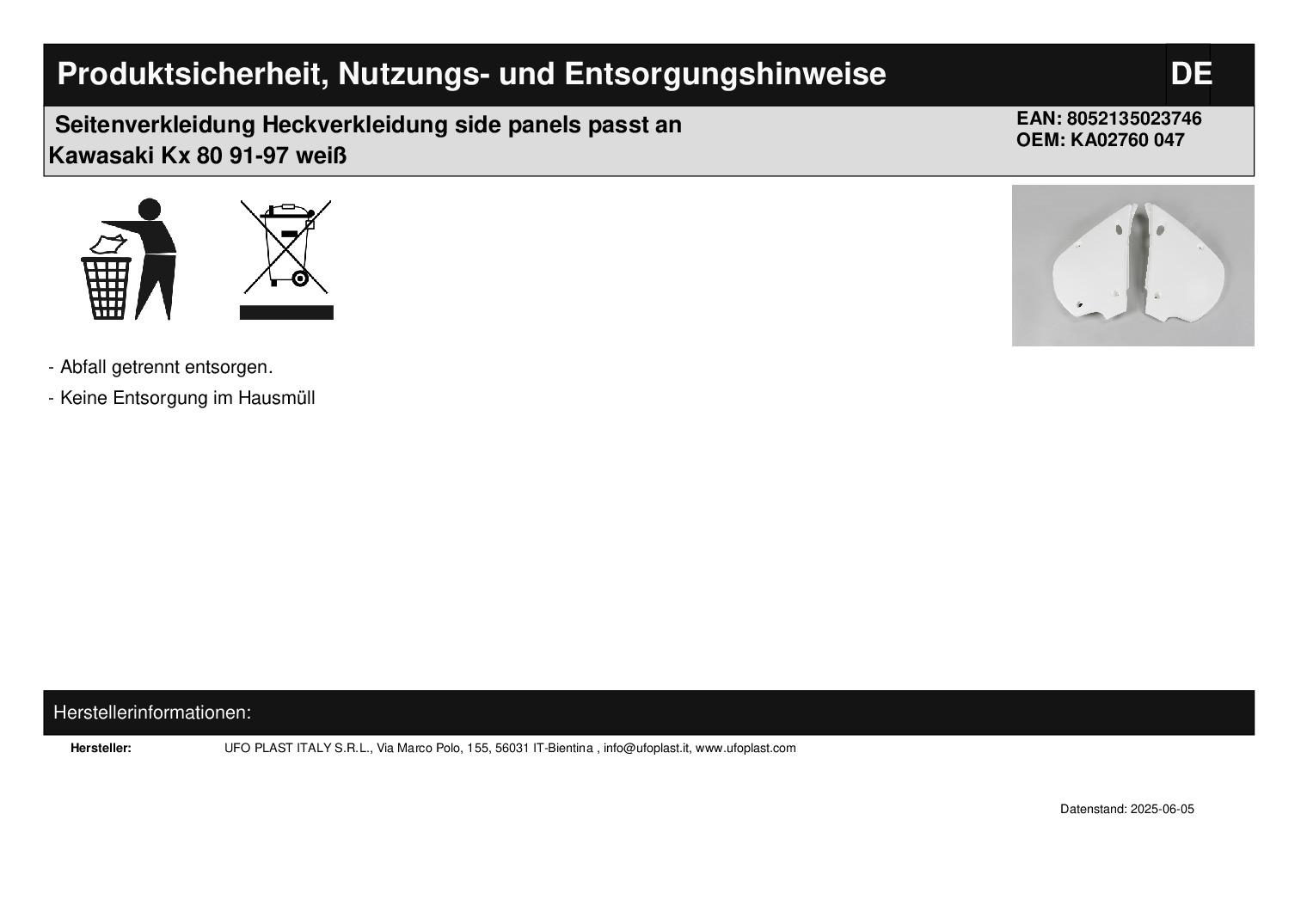 Seitenverkleidung Heckverkleidung side panels passt an Kawasaki Kx 80 91-97 weiß