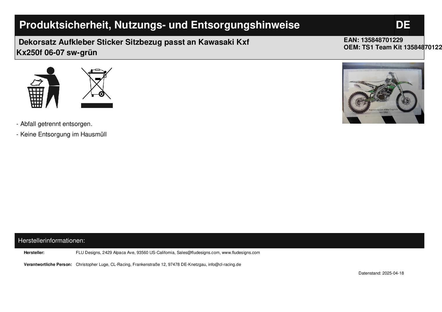 In dieser Auktion gibt es folgenden Artikel zu kaufen: Dekorsatz (siehe Foto) Modell: passend für Kawasaki KXF 250 Bj.: 06 - 07 Lieferumfang: Dekor incl. Sitzbezug Artikelzustand: neu Bei Unklarheiten oder Fragen bitte erst E-Mail schreiben.