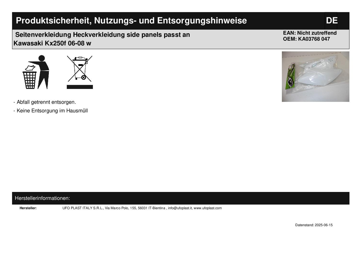 In dieser Auktion gibt es folgenden Artikel zu kaufen: Seitenverkleidung (ähnlich Foto) Fahrzeug: passend für Kawasaki KXF 250 Bj.: 06 - 08 Lieferumfang: siehe Foto Artikelzustand: neu aus Geschäftsauflösung, mit leichten Lagerspuren; Zustand ähnlich Foto Bei Unklarheiten oder Fragen bitte erst E-Mail schreiben.