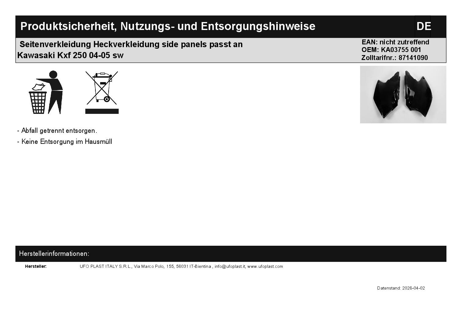 In dieser Auktion gibt es folgenden Artikel zu kaufen: Seitenverkleidung (ähnlich Foto) Modell: passend für Kawasaki KXF 250 Bj.: 04 - 05 Lieferumfang: links + rechts Artikelzustand: neu aus Geschäftsauflösung, mit leichten Lagerspuren; Zustand ähnlich Foto Bei Unklarheiten oder Fragen bitte erst E-Mail schreiben.
