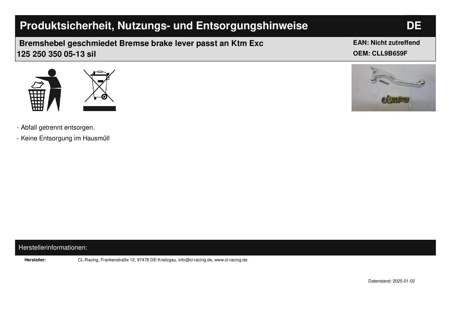 • Bremshebel geschmiedet Bremse brake lever passt an Ktm Exc 125 250 350 05-13 sil