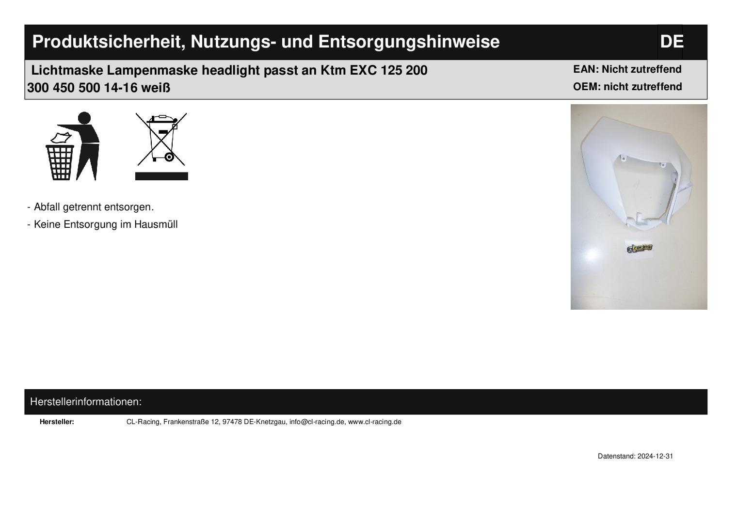 • Lichtmaske Lampenmaske headlight passt an Ktm EXC 125 200 300 450 500 14-16 weiß