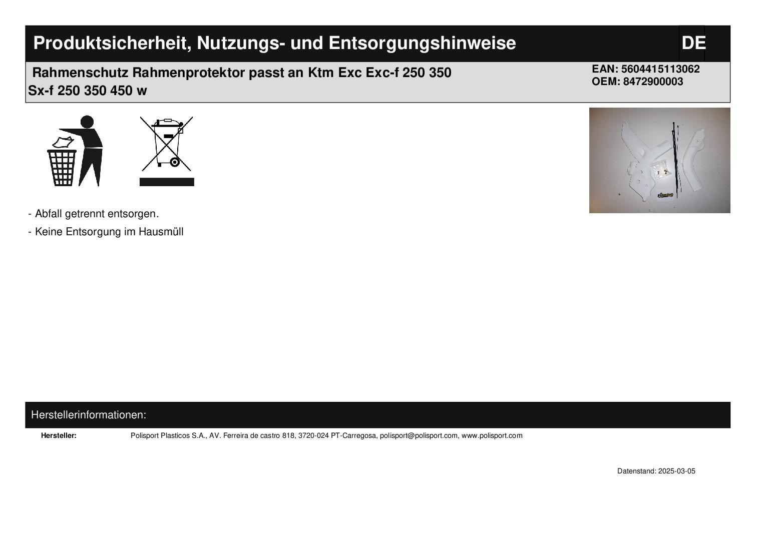 In dieser Auktion gibt es folgenden Artikel zu kaufen: Rahmenschutz (siehe Foto) Modell: passend für KTM EXC-F 250 Bj.: 2020 - 2023 EXC-F 350 Bj.: 2020 - 2023 EXC-F 450 Bj.: 2020 - 2023 EXC-F 500 Bj.: 2020 - 2023 - schützt den Rahmen in den belasteten Bereichen - schnelle, einfache Montage - bietet viel Grip- langliebig und beständig - abriebfest und stoßresistent Lieferumfang: siehe Foto Artikelzustand: neu Bei Unklarheiten oder Fragen bitte erst E-Mail schreiben. Es handelt sich hierbei um kein Originalteil