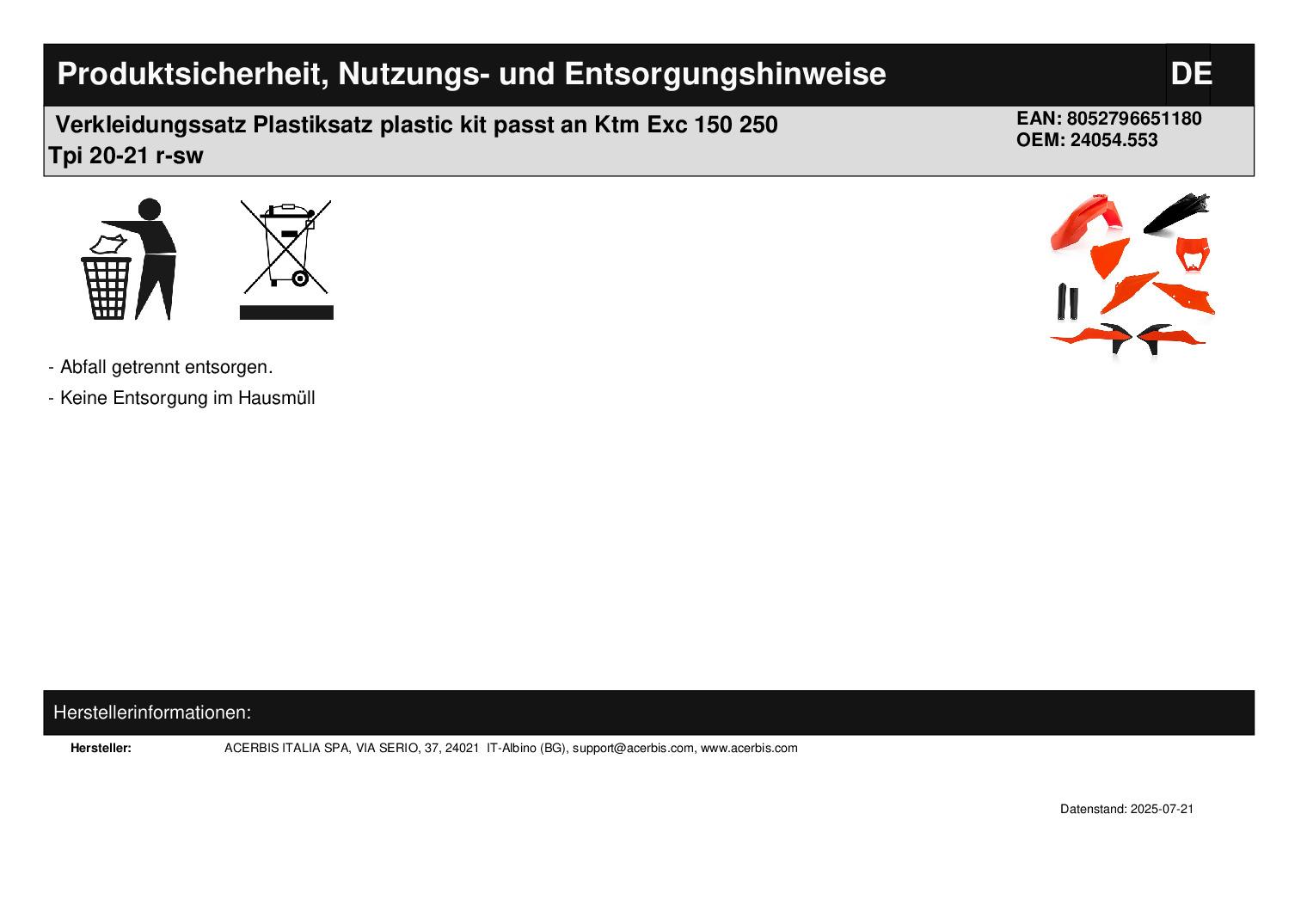 In dieser Auktion gibt es folgenden Artikel zu kaufen: Verkleidungssatz (siehe Foto) Fahrzeug: passend für Ktm Exc 150 TPI Bj.: 2020 - 2021 (2-Takt) Exc 250 TPI Bj.: 2020 - 2021 (2-Takt) Exc 300 TPI Bj.: 2020 - 2021 (2-Takt) Exc-f 350 Bj.: 2020 - 2021 (4-Takt) Exc-f 450 Bj.: 2020 - 2021 (4-Takt) Exc-f 500 Bj.: 2020 - 2021 (4-Takt) XC-W 125 Bj.: 2020 - 2021 (2-Takt) XC-W 250 Bj.: 2020 - 2021 (2-Takt) XC-W 300 Bj.: 2020 - 2021 (2-Takt) XC-F 350 Bj.: 2020 - 2021 (4-Takt) Lieferumfang: Lampenmaske ohne Scheinwerfer Tankverkleidung Seitenverkleidung Schutzblech vorne Schutzblech hinten Gabelprotektoren Luftfilterkastenabdeckung Artikelzustand: neu Es handelt sich hierbei um kein Originalteil Bei Unklarheiten oder Fragen bitte erst E-Mail schreiben.