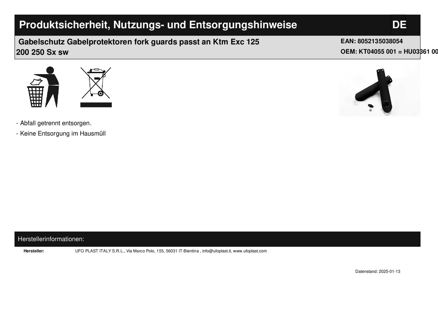 In dieser Auktion gibt es folgenden Artikel zu kaufen: Gabelprotektoren (siehe Foto) Fahrzeug: passend für Ktm EXC 125 Bj.: 2016 - 2019 EXC 200 Bj.: 2016 - 2023 EXC 250 Bj.: 2016 - 2017 EXC 300 Bj.: 2016 - 2017 EXC 450 Bj.: 2016 EXC 500 Bj.: 2016 EXC TPI 150 Bj.: 2020 - 2023 EXC TPI 250 Bj.: 2018 - 2023 EXC TPI 300 Bj.: 2018 - 2023 EXC-F 250 Bj.: 2016 - 2023 EXC-F 450 Bj.: 2017 - 2023 EXC-F 500 Bj.: 2017 - 2023 SX 125 Bj.: 2015 - 2022 SX 250 Bj.: 2015 - 2022 SX-F 250 Bj.: 2015 - 2022 SX-F 350 Bj.: 2015 - 2022 SX-F 450 Bj.: 2015 - 2022 passend für Husqvarna TC 125, 250 Bj.: 2015 - 2022 TC 300 Bj.: 2015 - 2018 TC 310 Bj.: 2015 - 2020 TE 125 Bj.: 2016 - 2019 TE 250, 300 Bj.: 2016 - 2023 TE 310 Bj.: 2016 - 2020 TX 125 Bj: 2016 - 2019 TX 250, 300 Bj.: 2016 - 2022 FC 250, 350, 450 Bj.: 2015 - 2022 FE 250, 350, 450, 501 Bj.: 2016 - 2023 passend für GasGas EC 250, 300 Bj.: 2021 - 2023 EC-F 250, 350 Bj.: 2021 - 2023 EX-F 250, 350, 450 Bj.: 2021 - 2023 MC 125 Bj.: 2021 - 2023 MC 250 Bj.: 2022 - 2023 MC-F 250 Bj.: 2021 - 2023 MC-F 350 Bj.: 2022 - 2023 MC-F 450 Bj.: 2021 - 2023 Lieferumfang: siehe Foto Artikelzustand: neu Es handelt sich hierbei um kein Originalteil! Bei Unklarheiten oder Fragen bitte erst E-Mail schreiben.