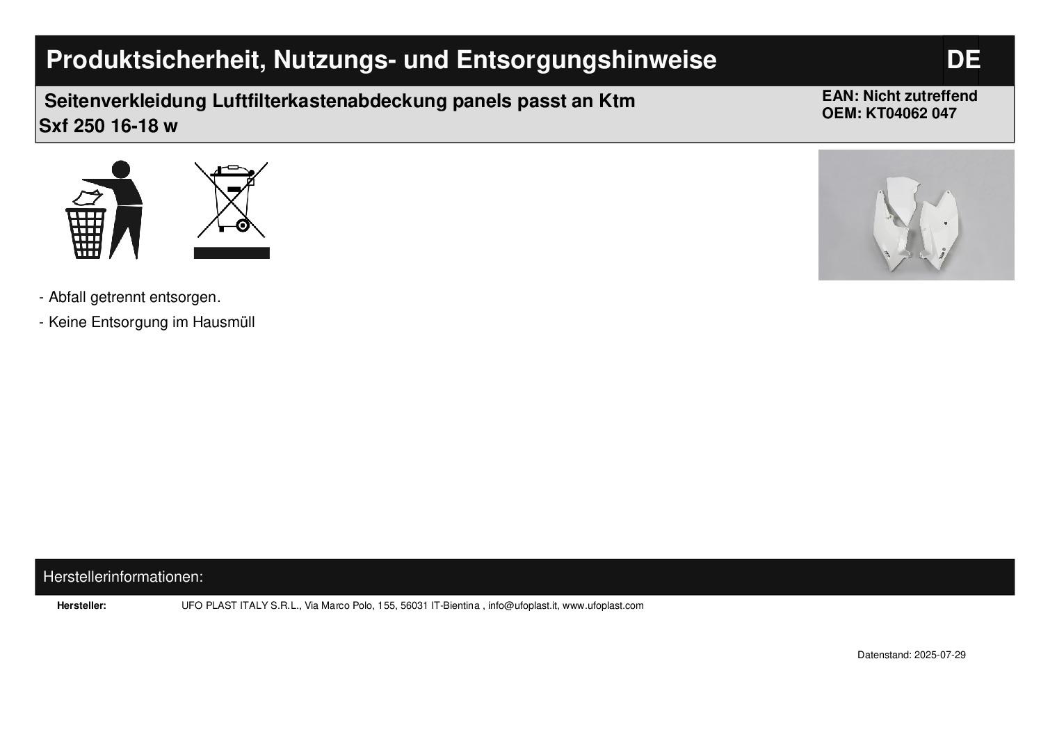 In dieser Auktion gibt es folgenden Artikel zu kaufen: Seitenverkleidungen und Luftfilterkastenabdeckung (siehe Foto) Modell: passend für Ktm SX 125, 150 Bj.: 16 - 18 SX 150 Bj.: 17 - 18 SXF 250, 350, 450 Bj.: 16 - 18 EXC 125, 200 Bj.: 17 - 19 EXC 250 Bj.: 17 EXC-F 250, 350, 450, 500 Bj.: 17 - 19 EXC TPI 250, 300 Bj.: 18 - 19 Lieferumfang: siehe Foto Artikelzustand: neu Es handelt sich hierbei um kein Originalteil Bei Unklarheiten oder Fragen bitte erst E-Mail schreiben.