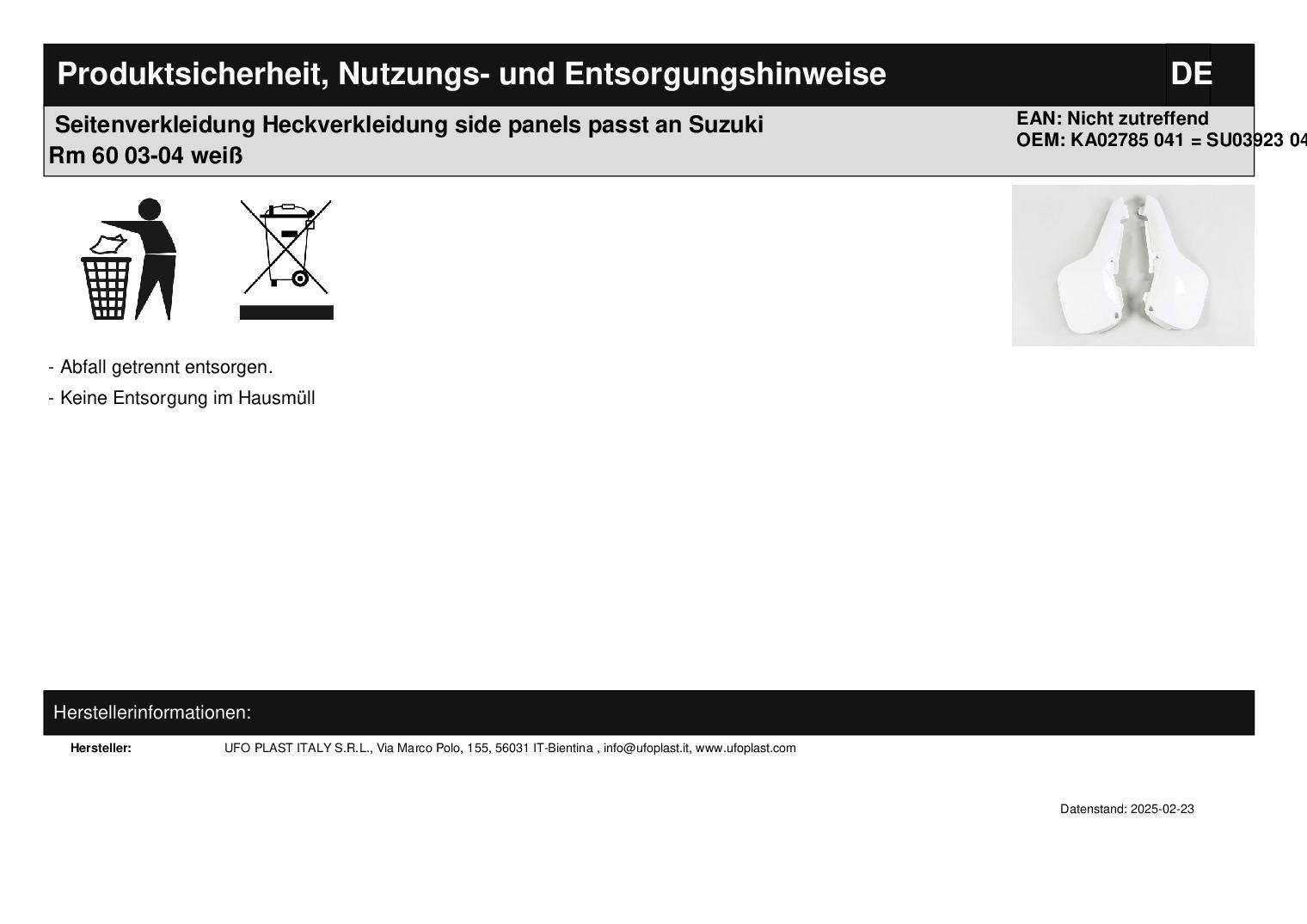 In dieser Auktion gibt es folgenden Artikel zu kaufen: Seitenverkleidung (siehe Foto) Fahrzeug: passend für Kawasaki Kx 60 Bj.: 84 - 04 passend für Suzuki Rm 60 Bj.: 03 - 04 Lieferumfang: siehe Foto Artikelzustand: neu aus Geschäftsauflösung, mit leichten Lagerspuren; Zustand siehe Foto Bei Unklarheiten oder Fragen bitte erst E-Mail schreiben.