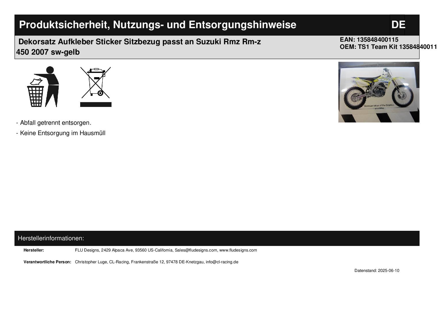 In dieser Auktion gibt es folgenden Artikel zu kaufen: Dekorsatz (siehe Foto) Modell: passend für Suzuki RMZ 450 Bj.: 07 Lieferumfang: Dekor incl. Sitzbezug Artikelzustand: neu Bei Unklarheiten oder Fragen bitte erst E-Mail schreiben.