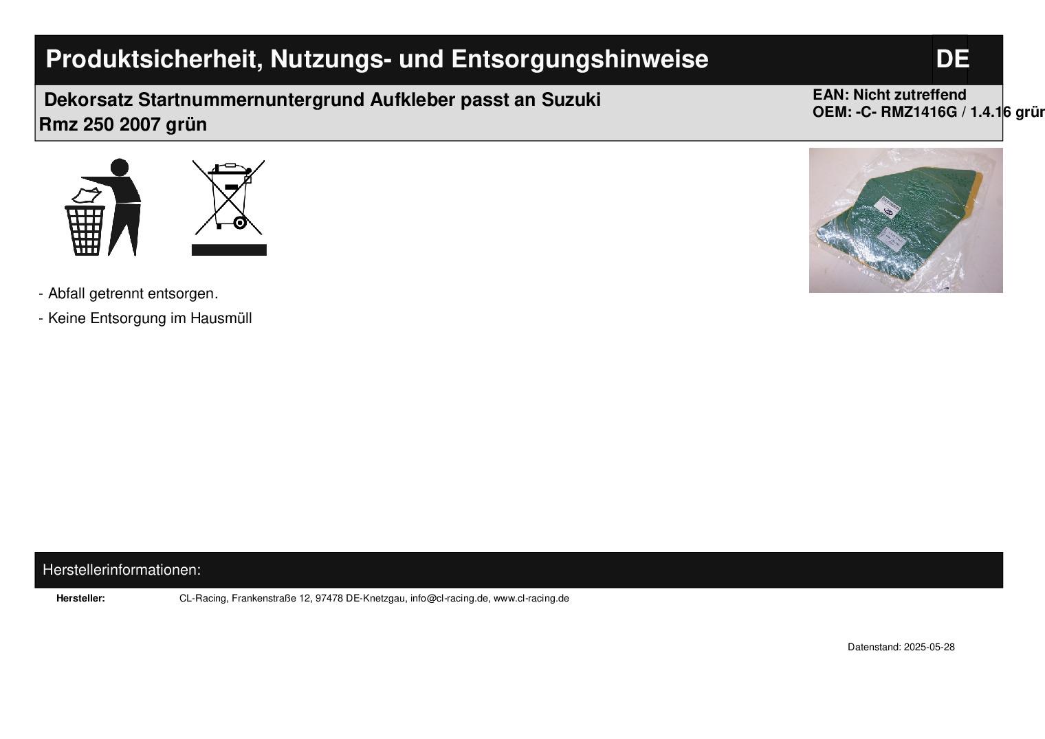 Herstellernummer: -C- RMZ1416G / 1.4.16 grün