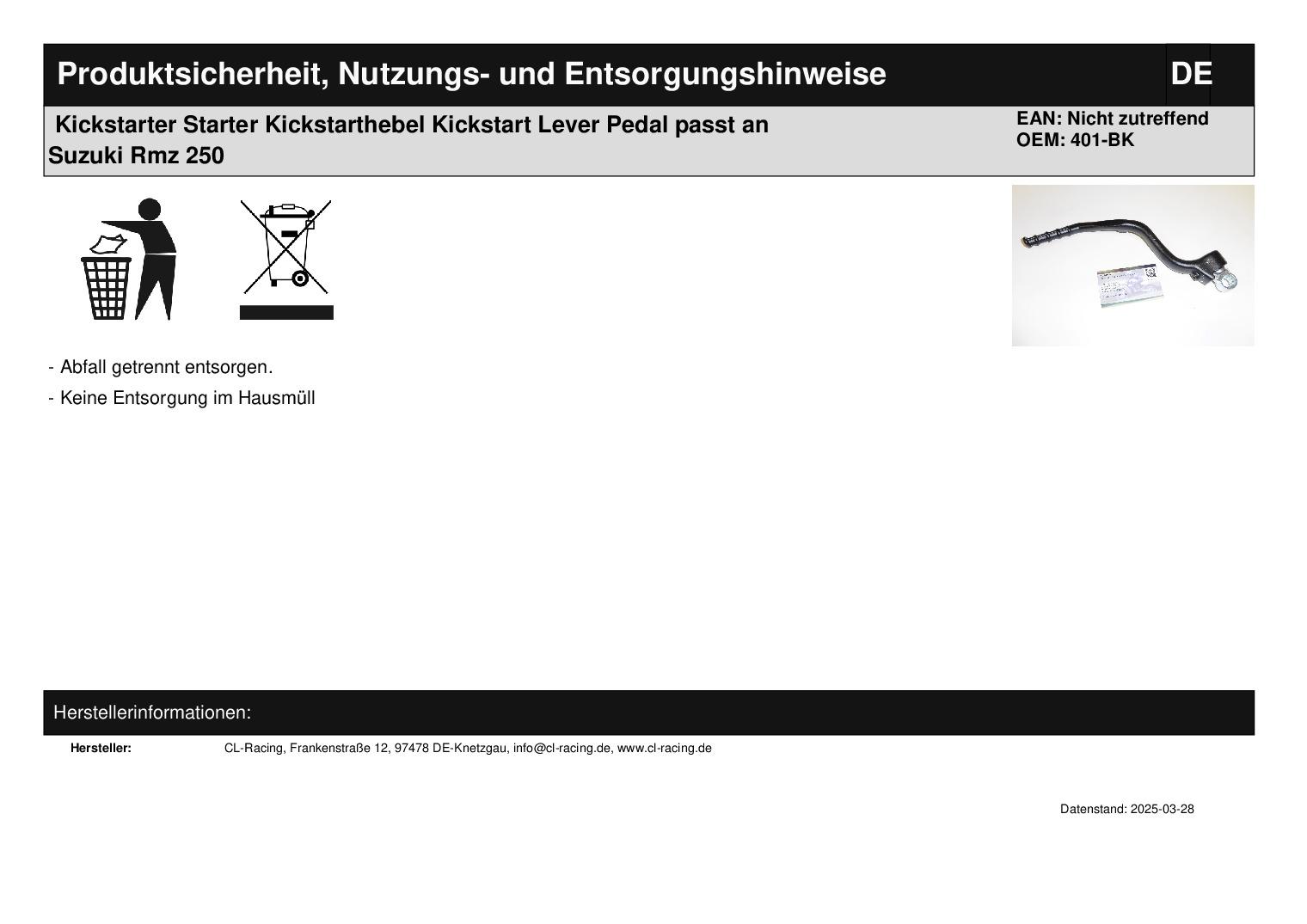 In dieser Auktion gibt es folgenden Artikel zu kaufen: Kickstarter (siehe Foto) Modell: passend für Suzuki Rmz 250 Bj.: 2011 - 2018 Lieferumfang: siehe Foto Artikelzustand: neu Bei Unklarheiten oder Fragen bitte erst E-Mail schreiben.