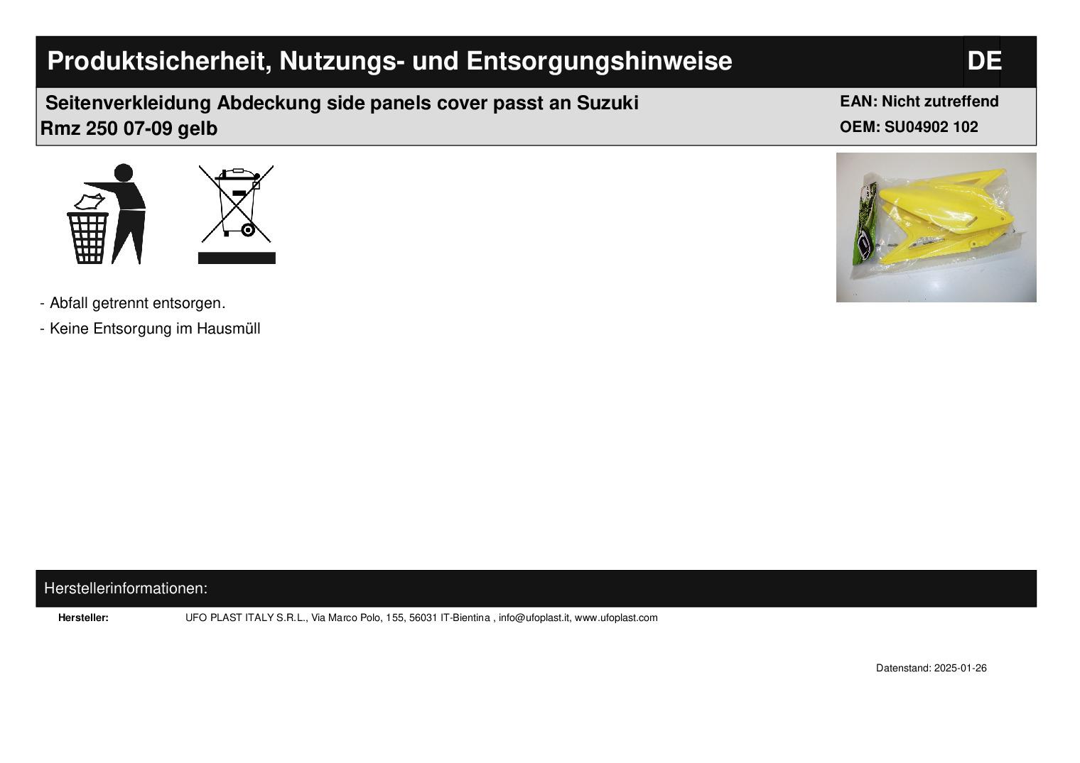 Titel: Seitenverkleidung Abdeckung side panels cover passt an Suzuki Rmz 250 07-09 gelb