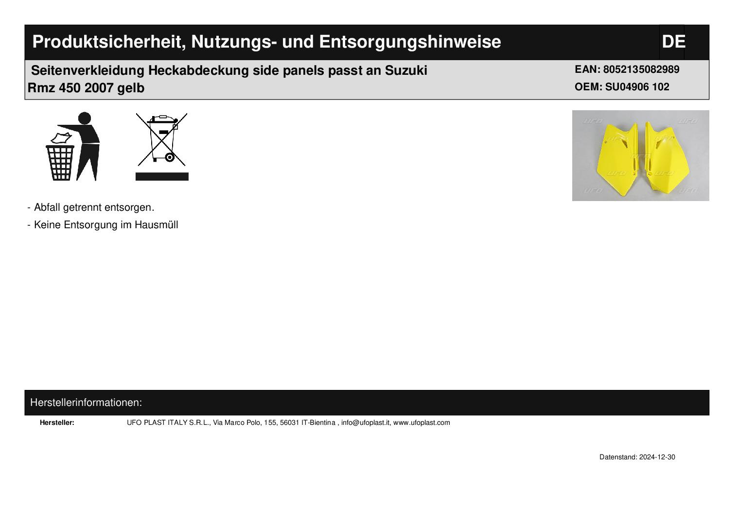 In dieser Auktion gibt es folgenden Artikel zu kaufen: Seitenverkleidung (ähnlich Foto) Fahrzeug: passend für Suzuki RMZ 450 Bj.: 07 Lieferumfang: siehe Foto Artikelzustand: neu aus Geschäftsauflösung, mit leichten Lagerspuren; Zustand ähnlich Foto Bei Unklarheiten oder Fragen bitte erst E-Mail schreiben.