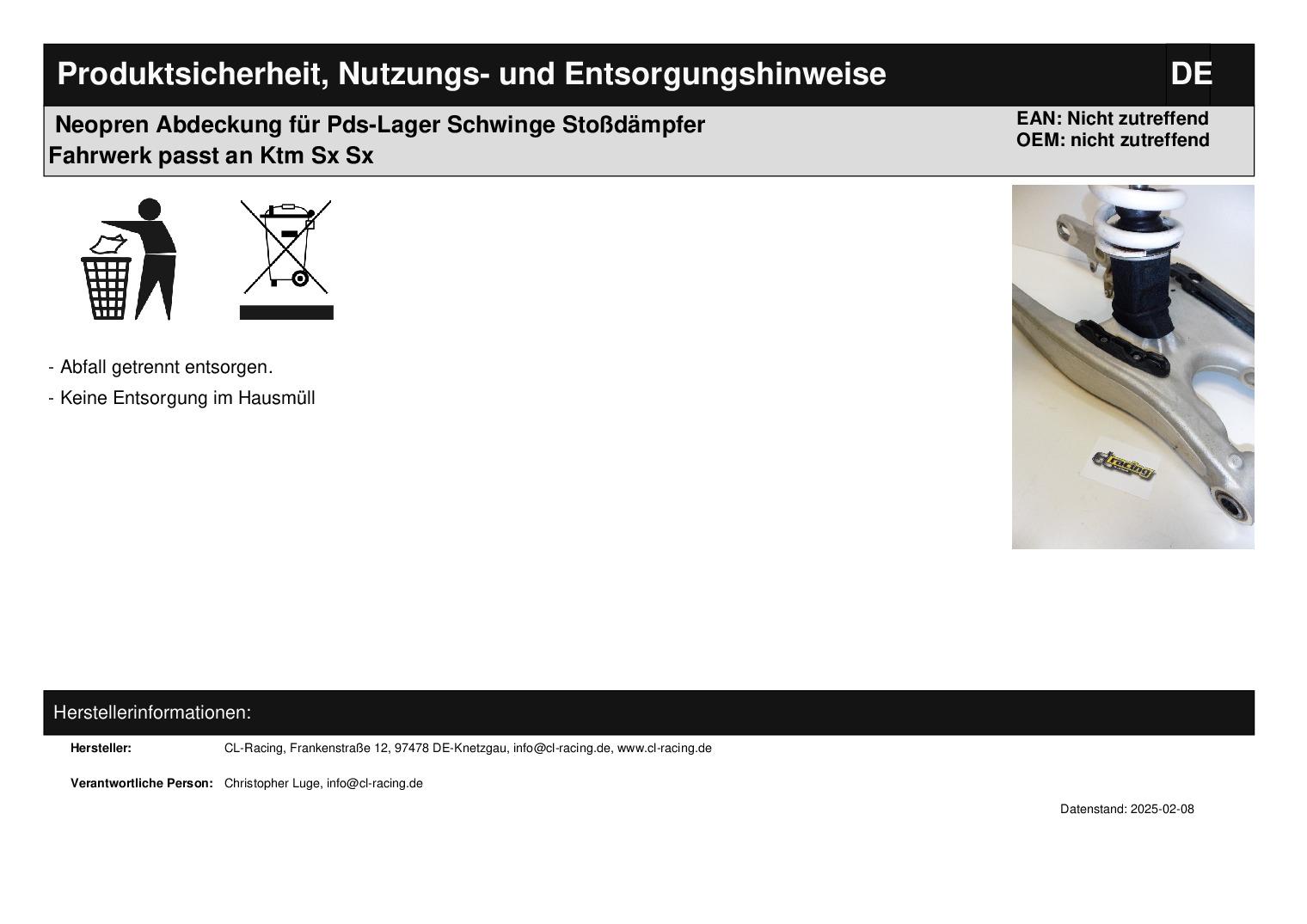 Titel: Neopren Abdeckung für Pds-Lager Schwinge Stoßdämpfer Fahrwerk passt an Ktm Sx Sx