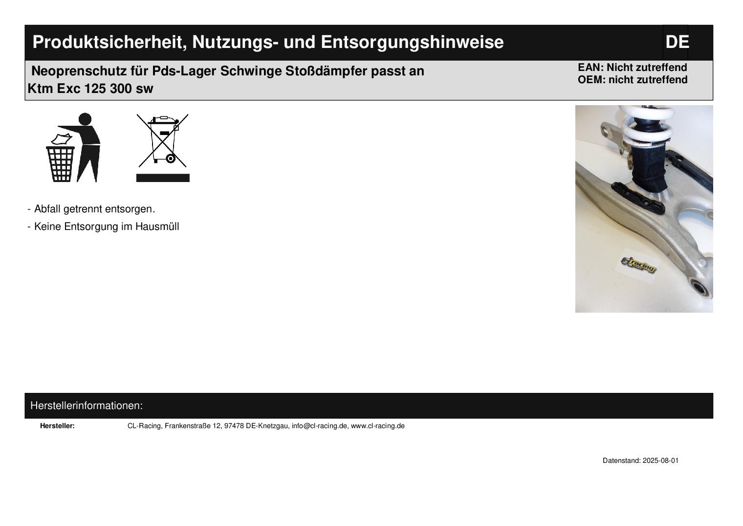 In dieser Auktion gibt es folgenden Artikel zu kaufen: Neoprenschutz für PDS-Lager (siehe Foto) Modell: passend für Ktm Sx, Exc, Sxf, Lc4 Bj.: --- passend für Husqvarna Te, Fe, Fs Bj.: --- passend für Husaberg Fc Bj.: --- mit PDS-Lager Sx, Exc, Sxf, Lc4 Artikelbeschreibung: Durch die Montage des Neoprenschutzes wird Ihr PDS-Lager vor Sand, Schlamm oder sonstige Verschmutzung geschützt, wodurch die Haltbarkeit der Bauteile erhöht wird. Lieferumfang: 1 Stück Artikelzustand: neu Es handelt sich hierbei um kein Originalteil Bei Unklarheiten oder Fragen bitte erst E-Mail schreiben.
