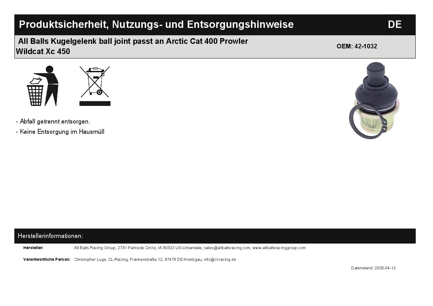 In dieser Auktion gibt es folgenden Artikel zu kaufen: Kugelgelenk (siehe Foto) Modell: passend für Arctic Cat/Textron Cat 1000 Bj.: 2013 - 2014 Cat 400 Automatik 4 WD Bj.: 2003 Cat 400 Automatik 4 WD EFT Bj.: 2013 - 2014 Cat 400 FIS Bj.: 2003 - 2004 Cat 500 Automatik Bj.: 2000 - 2002 Cat 500 FIS Bj.: 2003 - 2008 Cat 500 TRV Bj.: 2004 - 2009 Prowler 1000 Bj.: 2011 + 2013 Wildcat 1000 Bj.: 2012 - 2014 XC 450 Bj.: 2011 - 2012 Lieferumfang: siehe Foto Artikelzustand: neu Hierbei handelt es sich um kein Originalteil! Bei Unklarheiten oder Fragen bitte erst E-Mail schreiben.