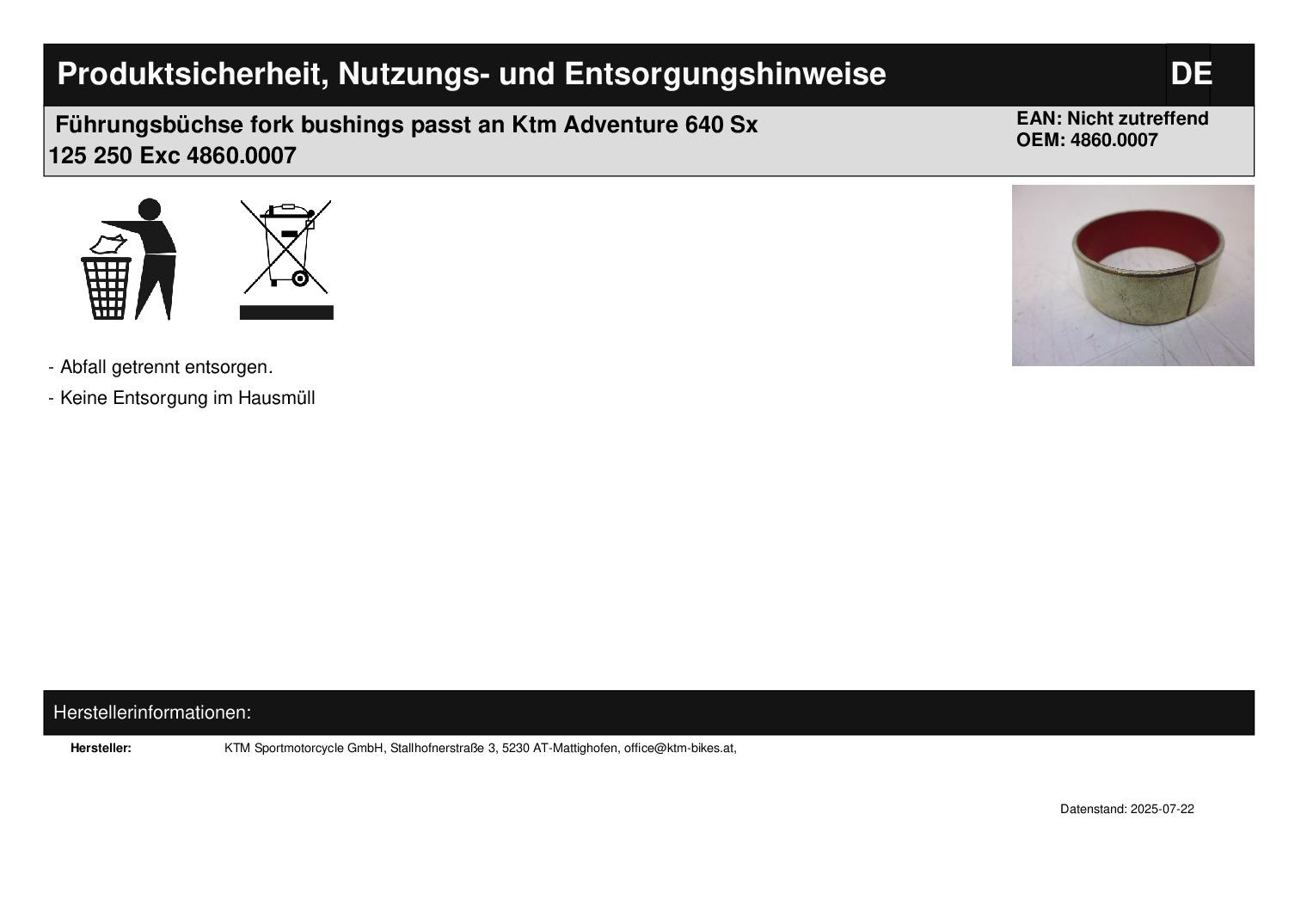 In dieser Auktion gibt es folgenden Artikel zu kaufen: Führungsbüchse 48 x 52 x 20 (siehe Foto) Modell: passend für KTM Adventure 640 Bj.: 01 - 02 SX 125, 250, 380, 400, 520 Bj.: 02 SXS 125, 540 Bj.: 02 EXC 250 Racing Bj.: 02 Rally Europe 660 Bj.: 02 Lieferumfang: 1 Stück Artikelzustand: neu aus Geschäftsauflösung, mit minimalen Lagerspuren; Zustand siehe Foto Bei Unklarheiten oder Fragen bitte erst E-Mail schreiben.