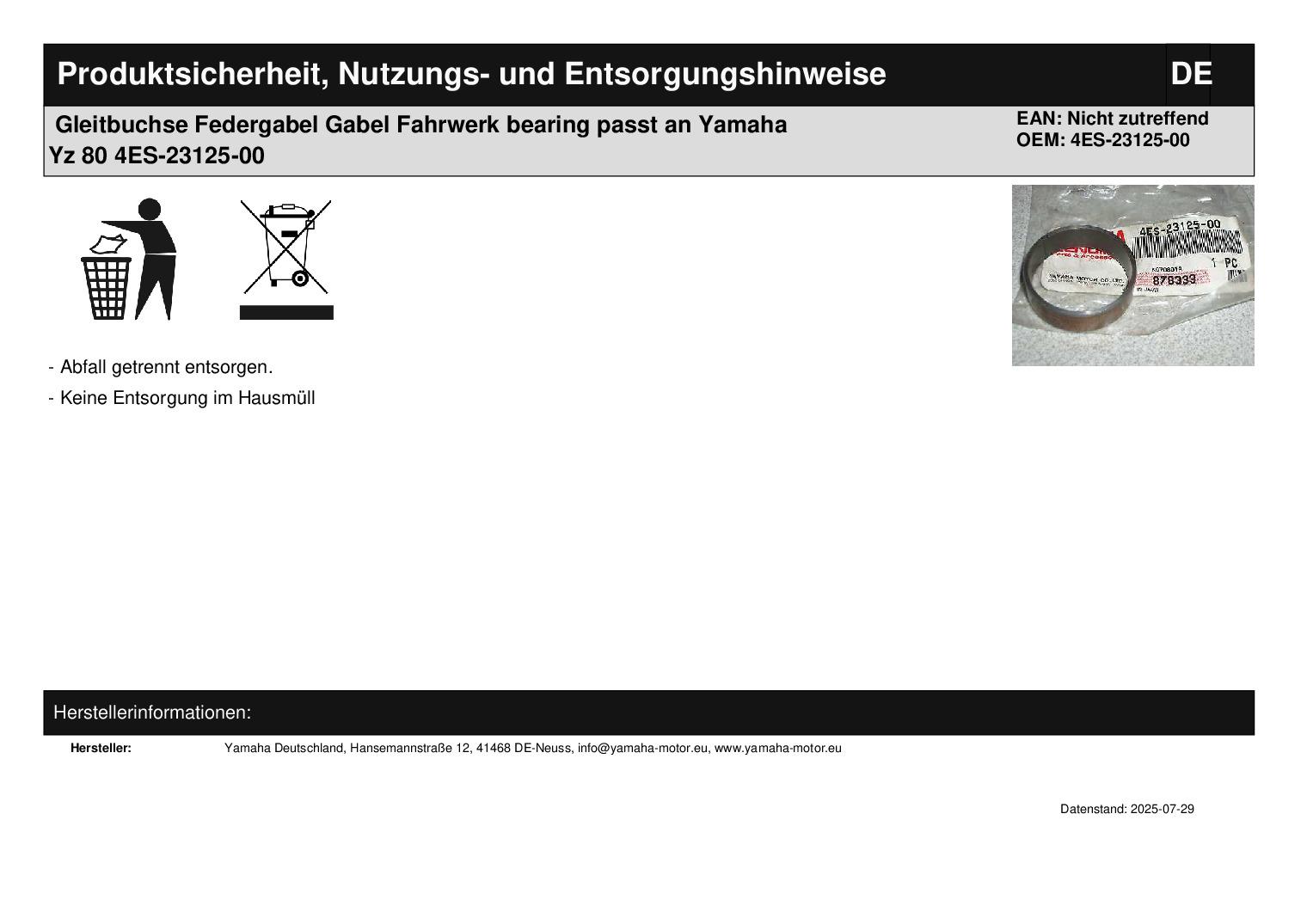In dieser Auktion gibt es folgenden Artikel zu kaufen: Gleitbuchse (siehe Foto) Modell: passend für Yamaha 1993 YZ80E1 FRONT FORK 1994 YZ80F1 FRONT FORK 1995 YZ80G1 FRONT FORK 1996 YZ80H1 FRONT FORK 1997 YZ80J1 FRONT FORK 1998 YZ80K1 FRONT FORK 1999 COMPETITION (DEEP PURPLISH BLUE SOLID E) - YZ80L FRONT FORK 2000 YZ80M1 FRONT FORK 2000 YZ80M FRONT FORK 2001 YZ 80 - YZ80N1 FRONT FORK 2001 YZ80N FRONT FORK Lieferumfang: 1 Stück Artikelzustand: neu aus Geschäftsauflösung, mit minimalen Lagerspuren; Zustand siehe Foto Bei Unklarheiten oder Fragen bitte erst E-Mail schreiben.