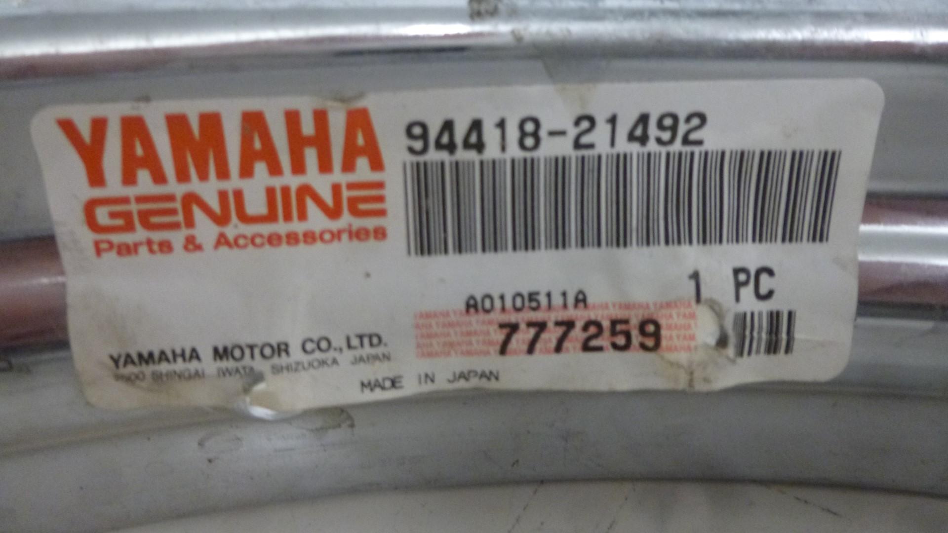In dieser Auktion gibt es folgenden Artikel zu kaufen: Felgenring (siehe Foto) Modell: passend für Yamaha XT 600 Bj.: 91 - 94 XT 500 E Bj.: 90 - 93, 95 XT 600 E Bj.: 90 - 00, 02 Details: J 21X1.85 3 01 DOT D.I.D JAPAN 1696 --08 09-- (steht auf der Felge) 36 Speichenbohrungen vorhanden Lieferumfang: siehe Foto Artikelzustand: neu aus Geschäftsauflösung, mit deutlichen Lagerspuren wie Abschürfungen und Oberflächenkratzer und Flugrost; Zustand siehe Foto Bei Unklarheiten oder Fragen bitte erst E-Mail schreiben.