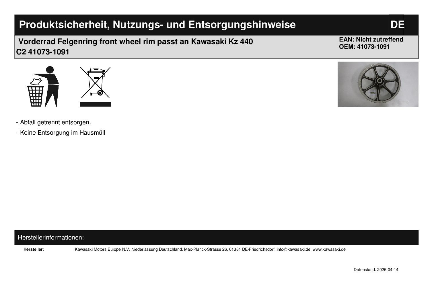 In dieser Auktion gibt es folgenden Artikel zu kaufen: Vorderrad (siehe Foto) Modell: passend für Kawasaki KZ 440 C2 Bj.: 81 Details: J 18X1.60 DOT F-1056 (steht auf dem Vorderrad) Lieferumfang: siehe Foto Artikelzustand: neu aus Geschäftsauflösung, mit Lagerspuren wie kleinere Abschürfungen und Oberflächenkratzer; Zustand siehe Foto Bei Unklarheiten oder Fragen bitte erst E-Mail schreiben.