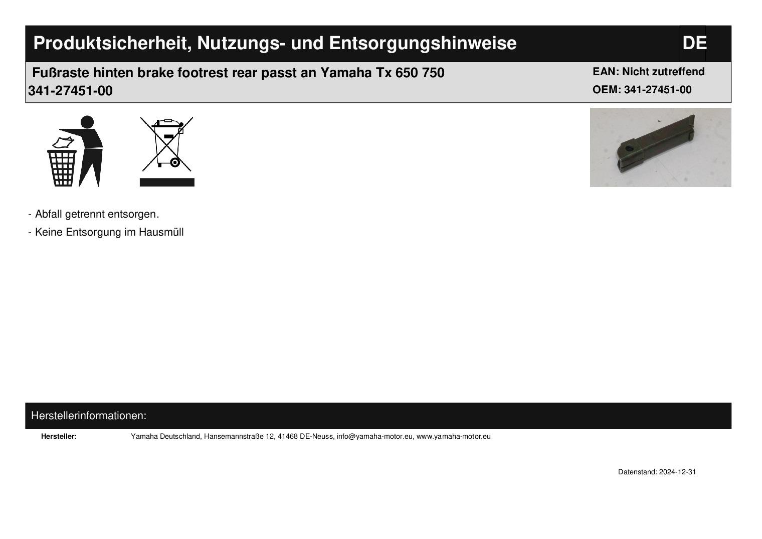 In dieser Auktion gibt es folgenden Artikel zu kaufen: Fußraste (siehe Foto) Modell: passend für Yamaha TX 650 Bj.: 74 - 76 TX 750 Bj.: 73 - 74 Lieferumgang: 1 Stück Artikelzustand: neu aus Geschäftsauflösung, mit minimalen Lagerspuren; Zustand siehe Foto Bei Unklarheiten oder Fragen bitte erst E-Mail schreiben.