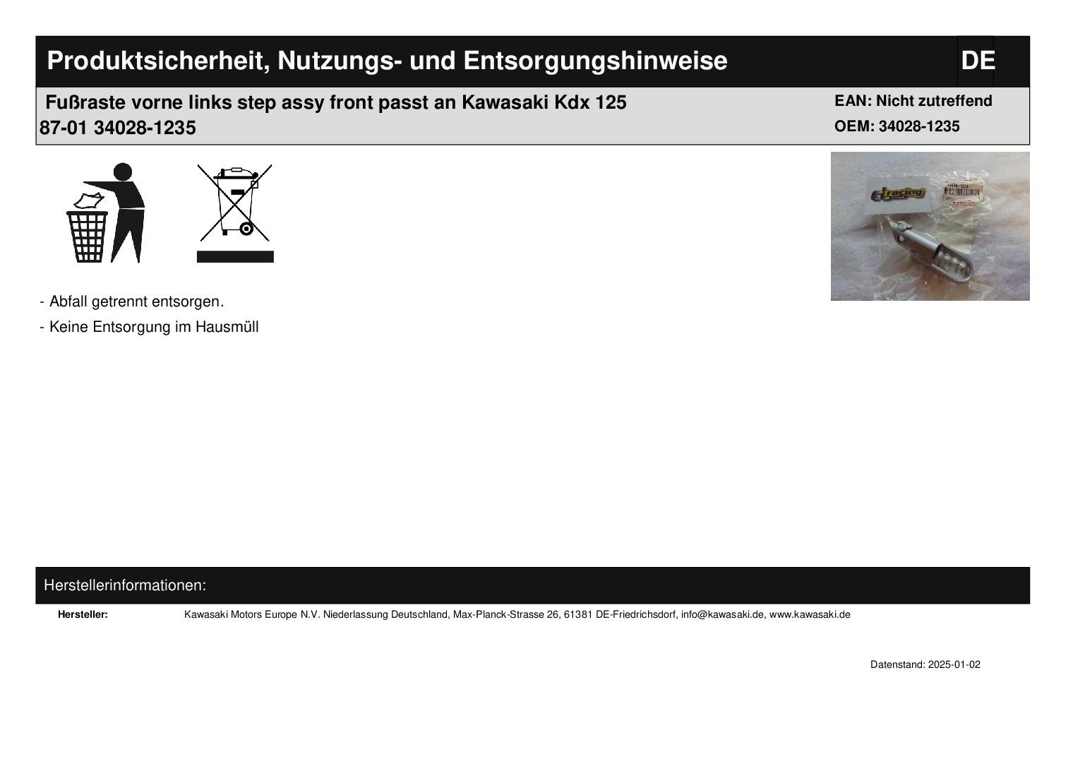 In dieser Auktion gibt es folgenden Artikel zu kaufen: Fußraste vorne (siehe Foto) Modell: passend für Kawasaki KDX 125 Bj.: 87 - 01 Lieferumfang: siehe Foto Artikelzustand: neu aus Geschäftsauflösung, mit minimalen Lagerspuren; Zustand siehe Foto Bei Unklarheiten oder Fragen bitte erst E-Mail schreiben.