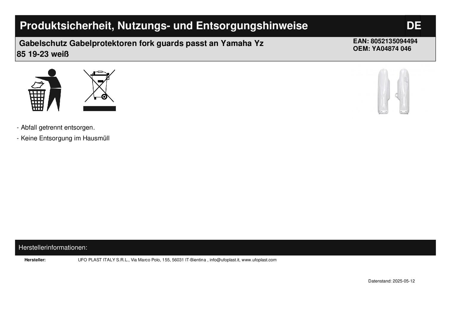 Titel: Gabelschutz Gabelprotektoren fork guards passt an Yamaha Yz 85 19-23 weiß