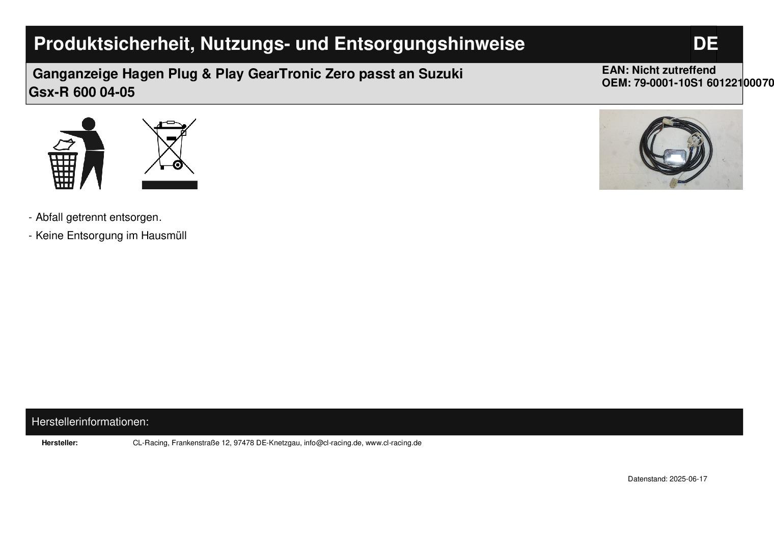 In dieser Auktion gibt es folgenden Artikel zu kaufen: Ganganzeige (siehe Foto) Modell: passend für Suzuki GSX-R 600, 750 Bj.: 04 - 05 GSX-R 1000 Bj.: 03 - 04 GSX 1400 Bj.: 04 - 09 Lieferumfang: siehe Foto Artikelzustand: neu aus Geschäftsauflösung, mit leichten Lagerspuren; Zustand siehe Foto Bei Unklarheiten oder Fragen bitte erst E-Mail schreiben.