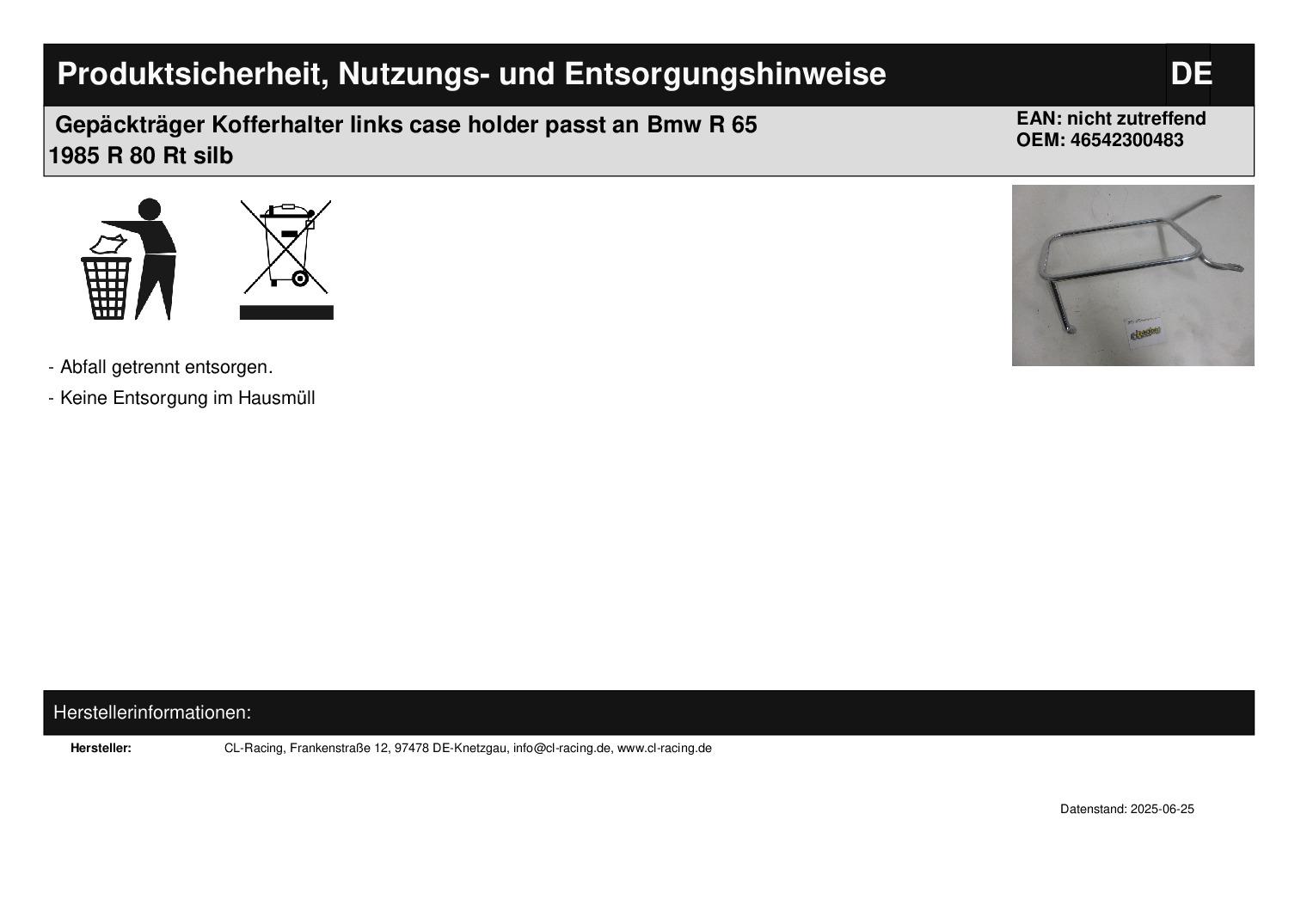 In dieser Auktion gibt es folgenden Artikel zu kaufen: Kofferhalter links (siehe Foto) Modell: passend für BMW R 65 Bj.: 85 R 65 RT Bj.: 85 R 80 Bj.: 84 R 80 RT Bj.: 84 R 100 RT Bj.: 87 R 100 RS Bj.: 86 Lieferumfang: siehe Foto Artikelzustand: neu aus Geschäftsauflösung, mit minimalen Lagerspuren; Zustand siehe Foto Bei Unklarheiten oder Fragen bitte erst E-Mail schreiben.