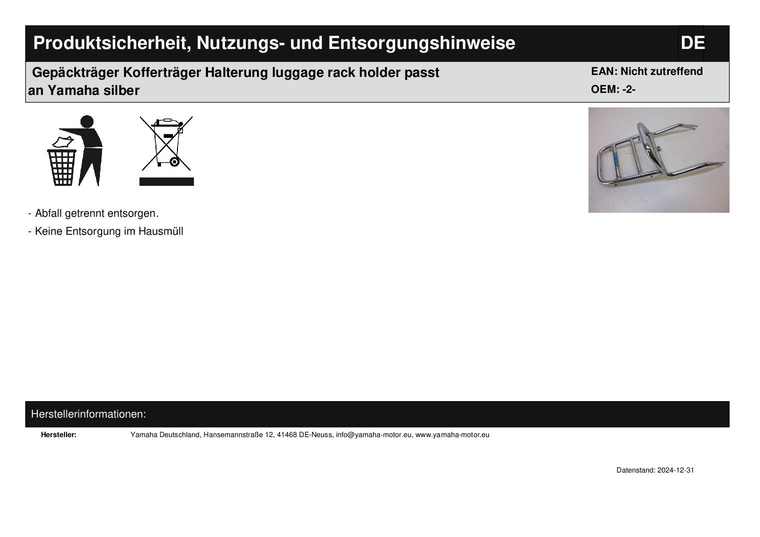 In dieser Auktion gibt es folgenden Artikel zu kaufen: Gepäckträger (siehe Foto) Modell: passend für Yamaha