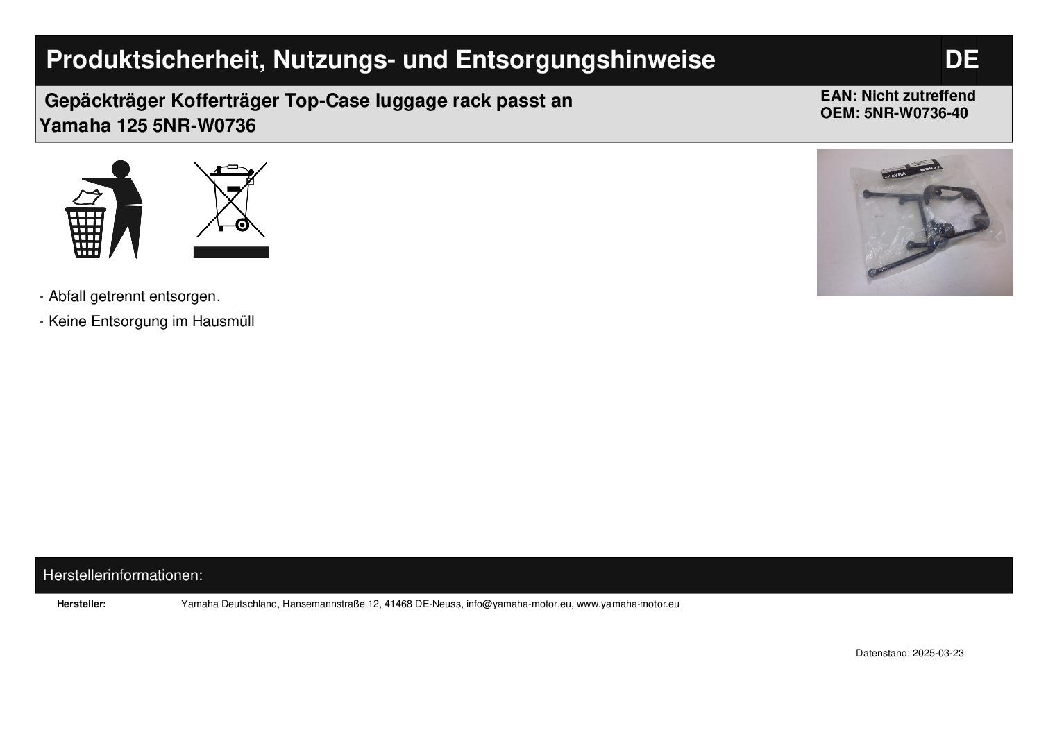 In dieser Auktion gibt es folgenden Artikel zu kaufen: Gepäckträger (siehe Foto) Modell: passend für Yamaha