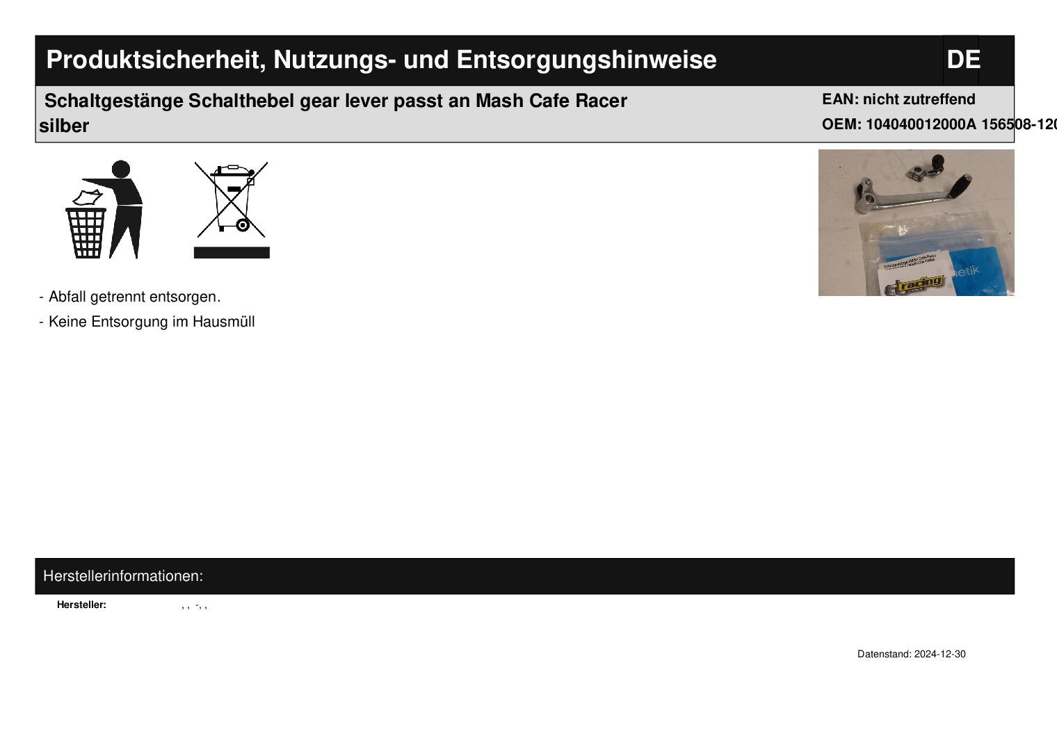 Cafe Racer 125 Bj.: unbekannt Lieferumfang: 1 Stück Artikelzustand: neu aus Geschäftsauflösung, mit leichten Lagerspuren; Zustand siehe Foto Bei Unklarheiten oder Fragen bitte erst E-Mail schreiben.
