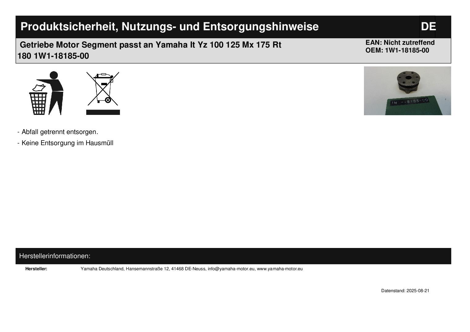 In dieser Auktion gibt es folgenden Artikel zu kaufen: Getriebeteil (siehe Foto) Modell: passend für Yamaha RT 180 Bj.: 1995 - 1998 IT 175 Bj.: 1977 - 1981 YZ 100, 125 Bj.: 1977 - 1981 DT 125 Bj.: 1978 - 1981 MX 175 Bj.: 1979 - 1981 Lieferumfang: siehe Foto Artikelzustand: neu aus Geschäftsauflösung, mit minimalen Lagerspuren; Zustand siehe Foto Bei Unklarheiten oder Fragen bitte erst E-Mail schreiben.