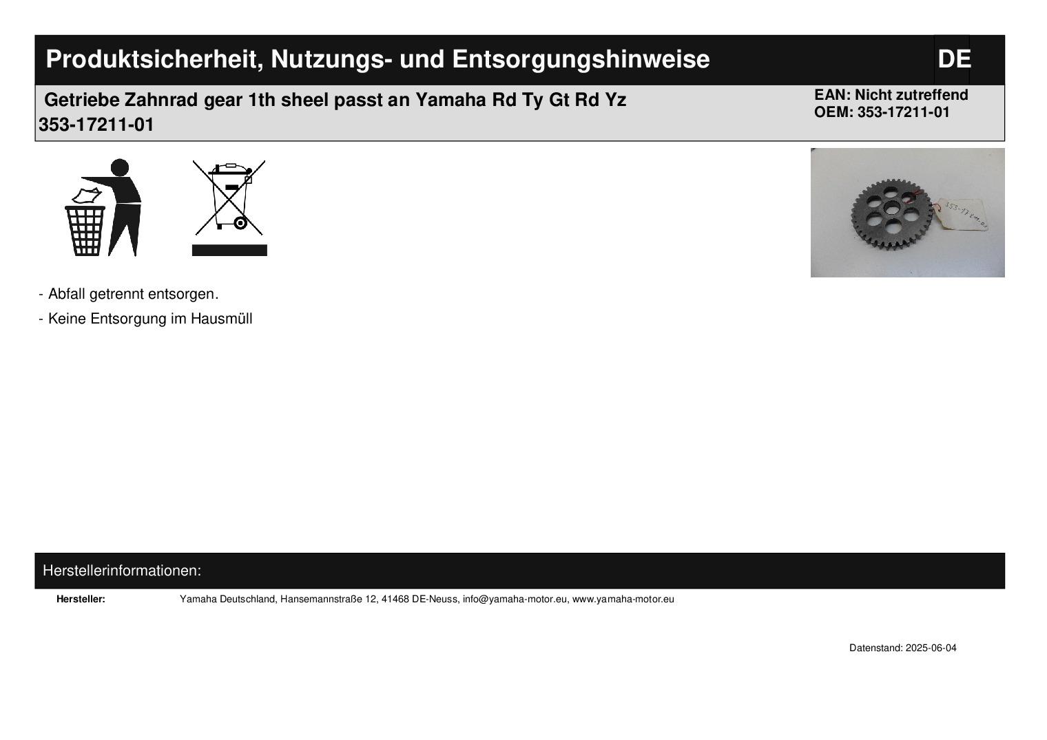 In dieser Auktion gibt es folgenden Artikel zu kaufen: Modell: passend Yamaha GT Bj.: 1973 - 1979 GT 80 Bj.: 1974 - 1980 TY 80 Bj.: 1974 - 1975 RD 60 Bj.: 1973 - 1975 YSR 50 Bj.: 1988 - 1992 MX 80 Bj.: 1980 - 1981 RX 50 Bj.: 1981 - 1084 DT 80 Bj.: 1981 YZ 80 Bj.: 1974 - 1979 Lieferumfang: 1 Stück Artikelzustand: neu aus Geschäftsauflösung, mit minimalen Lagerspuren; Zustand siehe Foto Bei Unklarheiten oder Fragen bitte erst E-Mail schreiben.