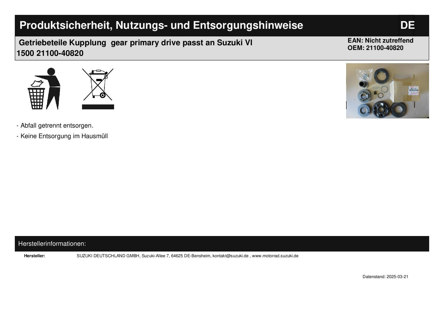 In dieser Auktion gibt es folgenden Artikel zu kaufen: Getriebeteile (siehe Foto) Modell: passend für Suzuki VL 1500 Bj.: 13 - 15 Lieferumfang: siehe Foto Artikelzustand: neu aus Geschäftsauflösung, mit minimalen Lagerspuren; Zustand siehe Foto Bei Unklarheiten oder Fragen bitte erst E-Mail schreiben.