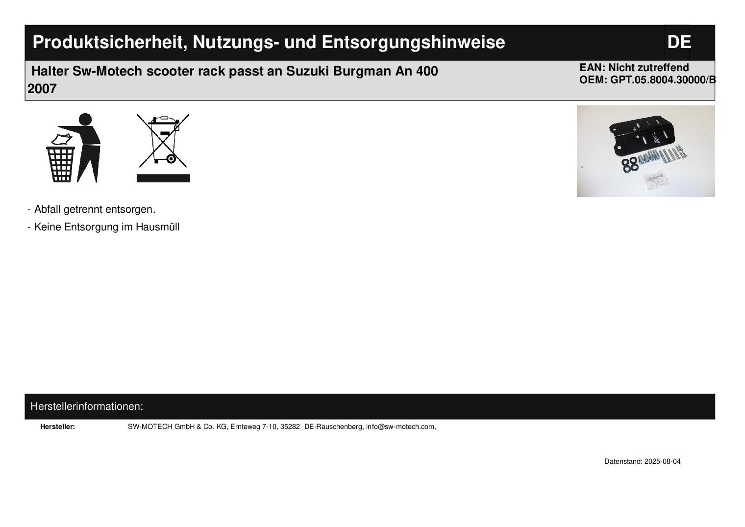 In dieser Auktion gibt es folgenden Artikel zu kaufen: Scooter Rack (siehe Foto) Fahrzeug: passend für Suzuki Burgman AN 400 Bj.: ab 2007 Lieferumfang: siehe Foto Artikelzustand: neu aus Geschäftsauflösung, mit minimalen Lagerspuren; Zustand siehe Foto Bei Unklarheiten oder Fragen bitte erst E-Mail schreiben.