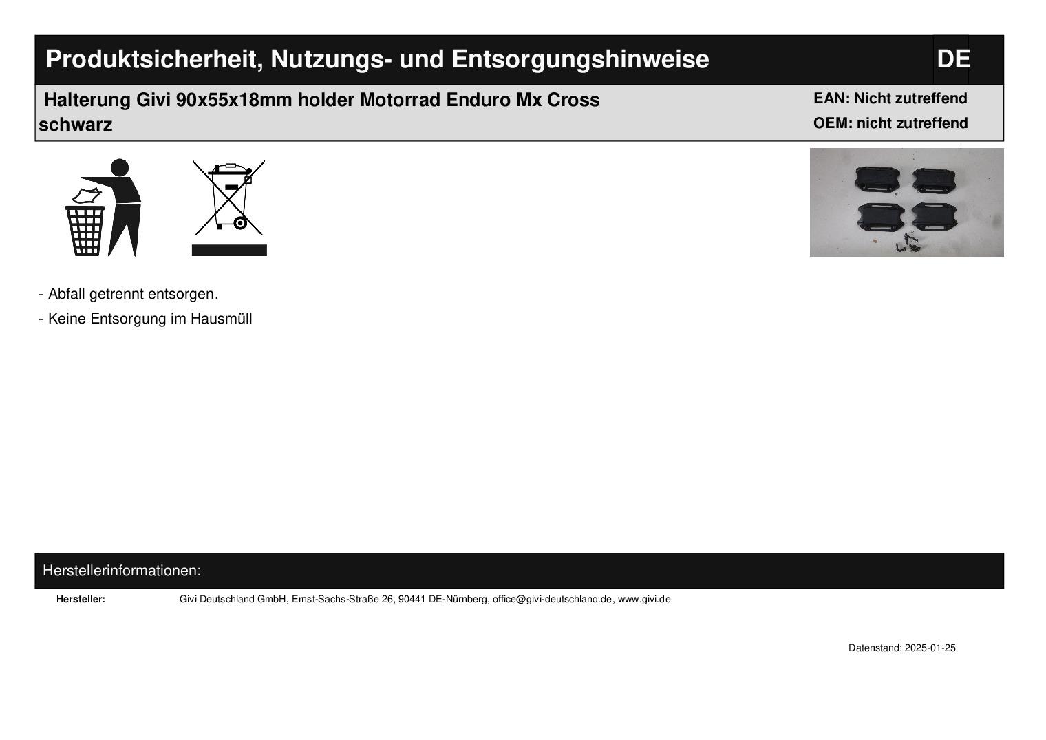 In dieser Auktion gibt es folgenden Artikel zu kaufen: Halter (siehe Foto) Modell: unbekannt Bj.: unbekannt Details: Abmaße: ca. 90 mm breit x 55 mm hoch x 18 mm tief Lochabstand in der Breite: ca. 53 mm (Mitte Loch) Lochabstand in der Höhe: ca. 38 mm (Mitte Loch) Lieferumfang: siehe Foto Artikelzustand: neu aus Geschäftsauflösung, mit leichten Lagerspuren; Zustand siehe Foto Bei Unklarheiten oder Fragen bitte erst E-Mail schreiben.