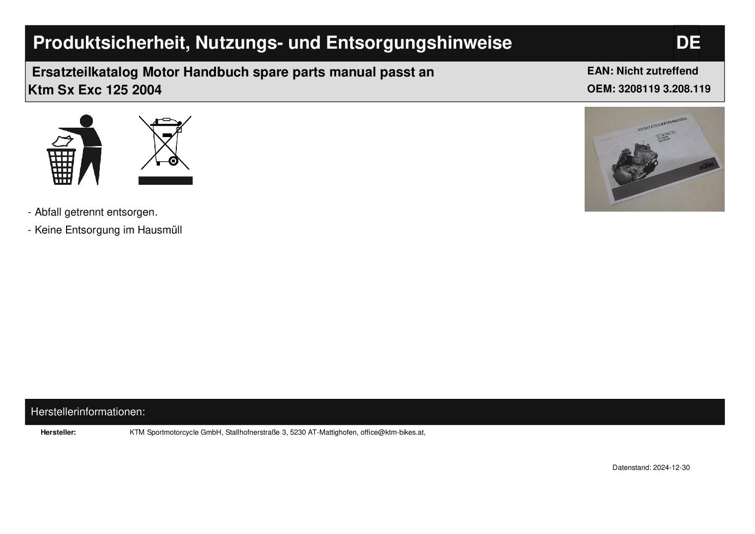 Titel: Ersatzteilkatalog Motor Handbuch spare parts manual passt an Ktm Sx Exc 125 2004