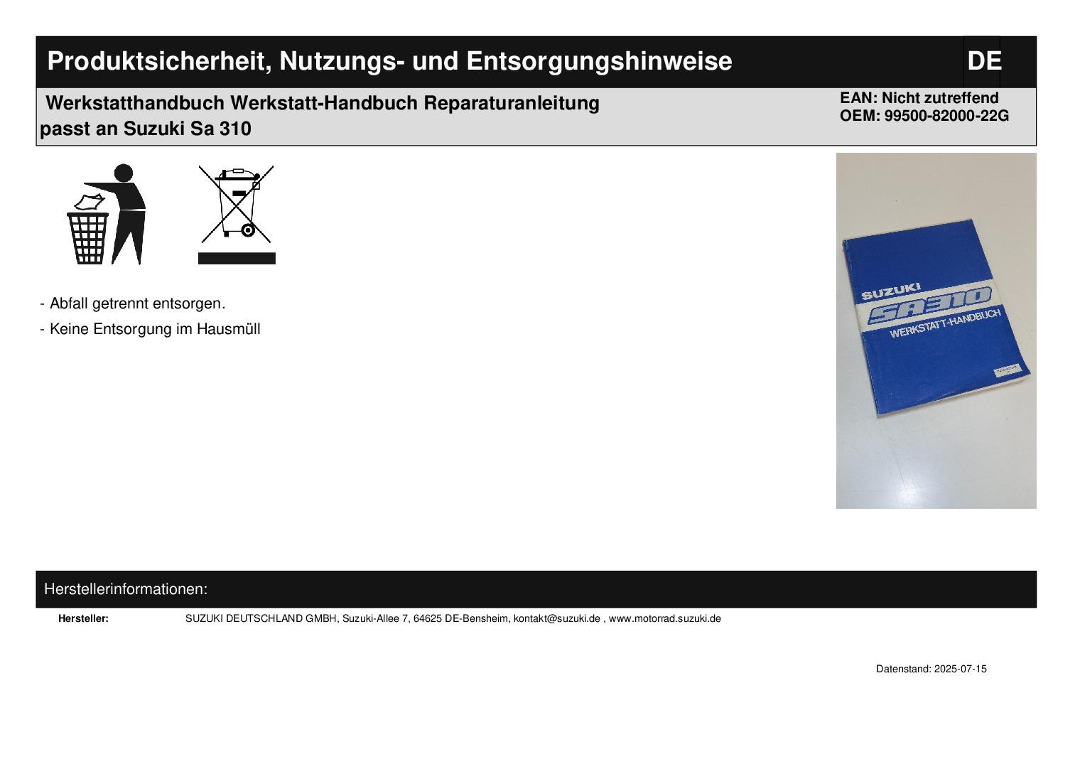 In dieser Auktion gibt es folgenden Artikel zu kaufen: Werkstatt-Handbuch mit Schaltplan (siehe Foto) Modell: passend für Suzuki SA310 Sprachen: deutsch Ausgabe: Dezember 1983 Lieferumfang: siehe Foto Artikelzustand: leichte Gebrauchsspuren auf dem Umschlag vorhanden; Zustand siehe Foto Bei Unklarheiten oder Fragen bitte erst E-Mail schreiben.