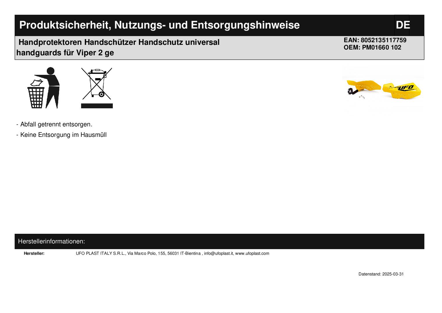 In dieser Auktion gibt es folgenden Artikel zu kaufen: Handprotektoren (siehe Foto) Modell: universal für Viper 2 Lieferumfang: 1 Paar mit Anbauteilen Artikelzustand: neu Bei Unklarheiten oder Fragen bitte erst E-Mail schreiben.