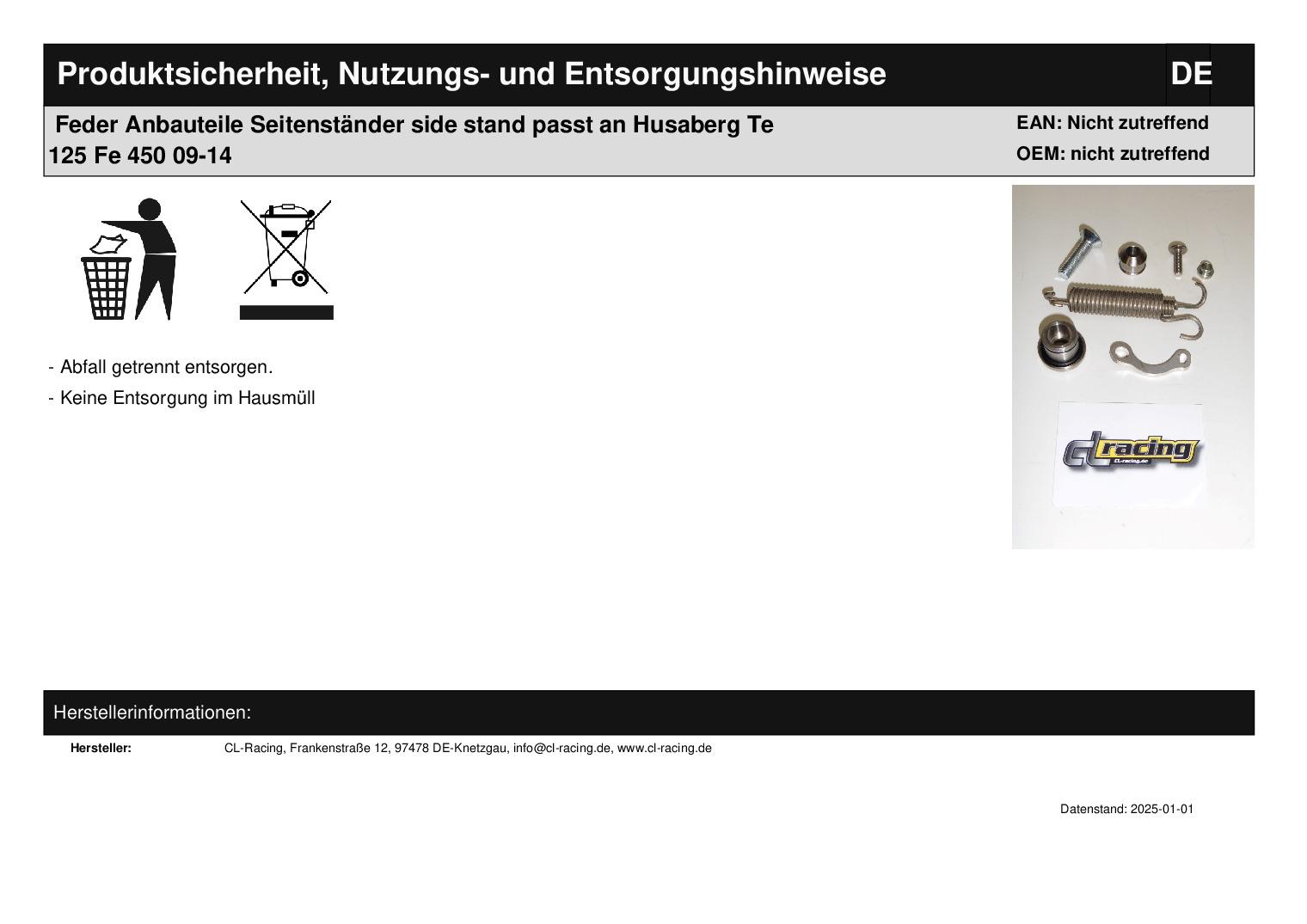 Titel: Feder Anbauteile Seitenständer side stand passt an Husaberg Te 125 Fe 450 09-14