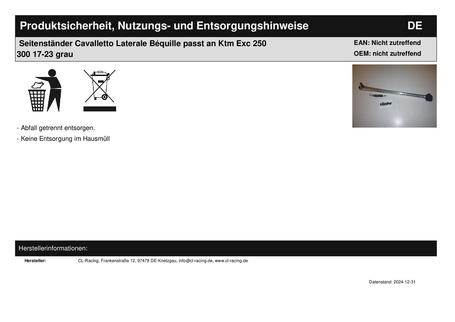 In dieser Auktion gibt es folgenden Artikel zu kaufen: hochwertiger Seitenständer inklusive Anbauteile (siehe Foto) Modell: passend für Ktm Exc, Exc-f, Xc-W, Xc-F, Xc 125 150 250 300 350 450 500 Bj.: 2017 - 2023 passend für Husqvarna Tx, Te, Fe 125 250 300 350 450 501 Bj.: 17 - 23 passend für GasGas Ec 200 Bj.: 2021 Ec 250 Bj.: 2021 - 2023 Ec 300 Bj.: 2021 - 2023 Ec 350 Bj.: 2021 - 2023 Material: Aluminium gefräst, gedreht Lieferumfang: Seitenständer, Buchse, 2 x Schraube, 2 x Feder, Blechlasche (siehe Foto) Artikelzustand: neu Es handelt sich hierbei um kein Originalteil! Bei Unklarheiten oder Fragen bitte erst E-Mail schreiben.