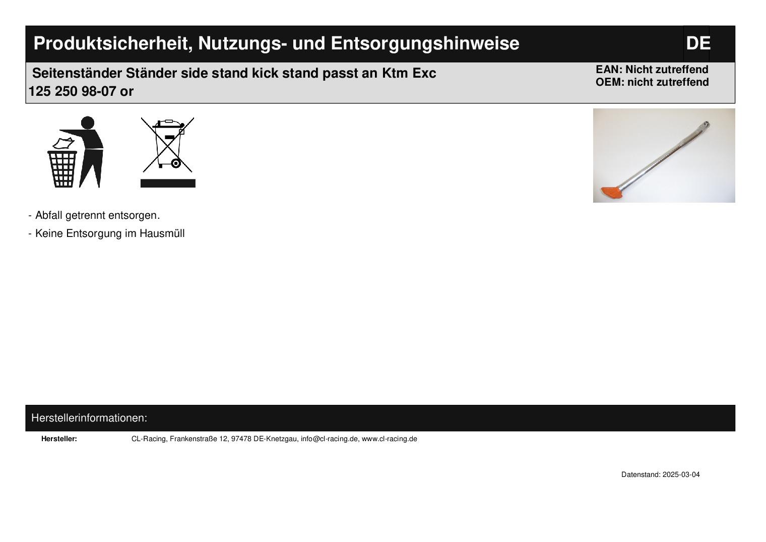 Titel: Seitenständer Ständer side stand kick stand passt an Ktm Exc 125 250 98-07 or