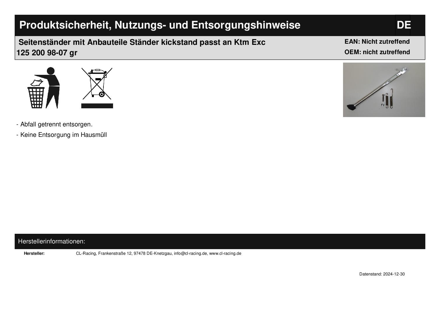 Titel: Seitenständer mit Anbauteile Ständer kickstand passt an Ktm Exc 125 200 98-07 gr