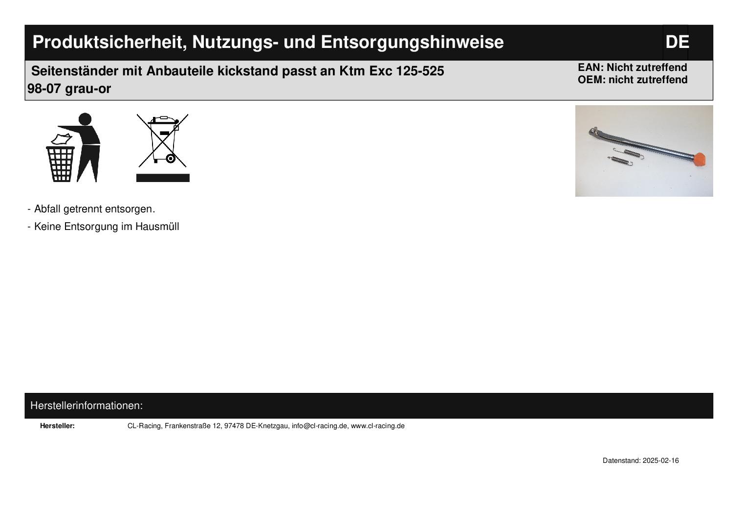 Titel: Seitenständer mit Anbauteile kickstand passt an Ktm Exc 125-525 98-07 grau-or