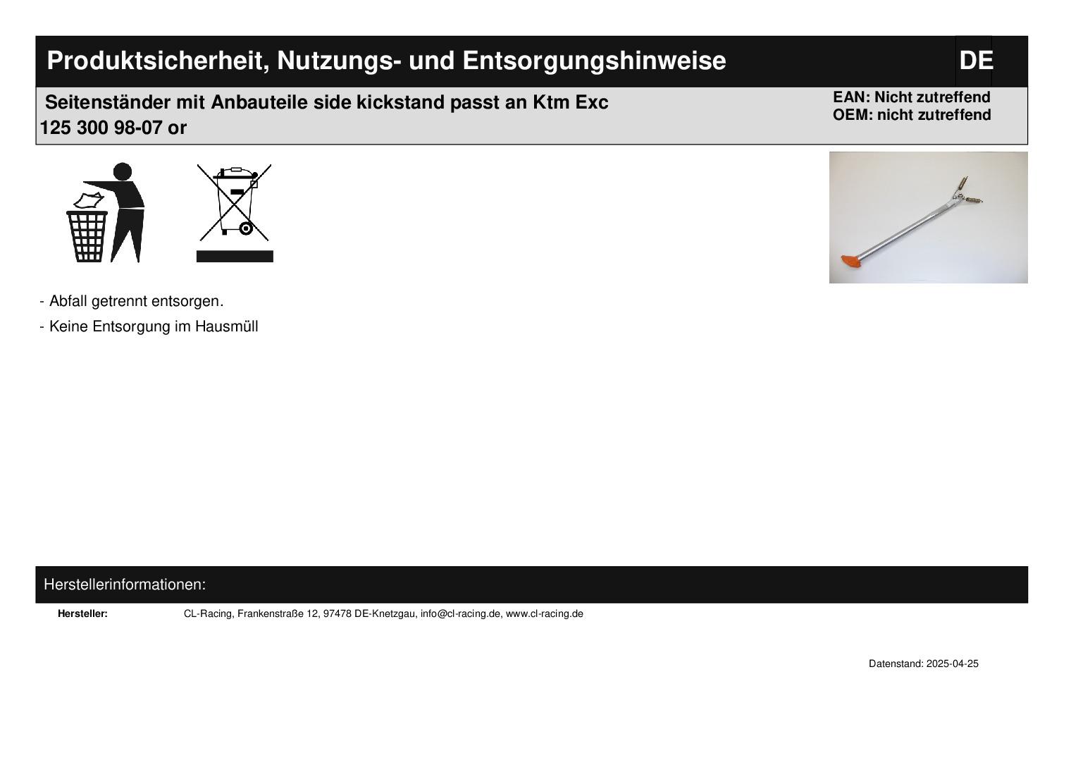 Titel: Seitenständer mit Anbauteile side kickstand passt an Ktm Exc 125 300 98-07 or