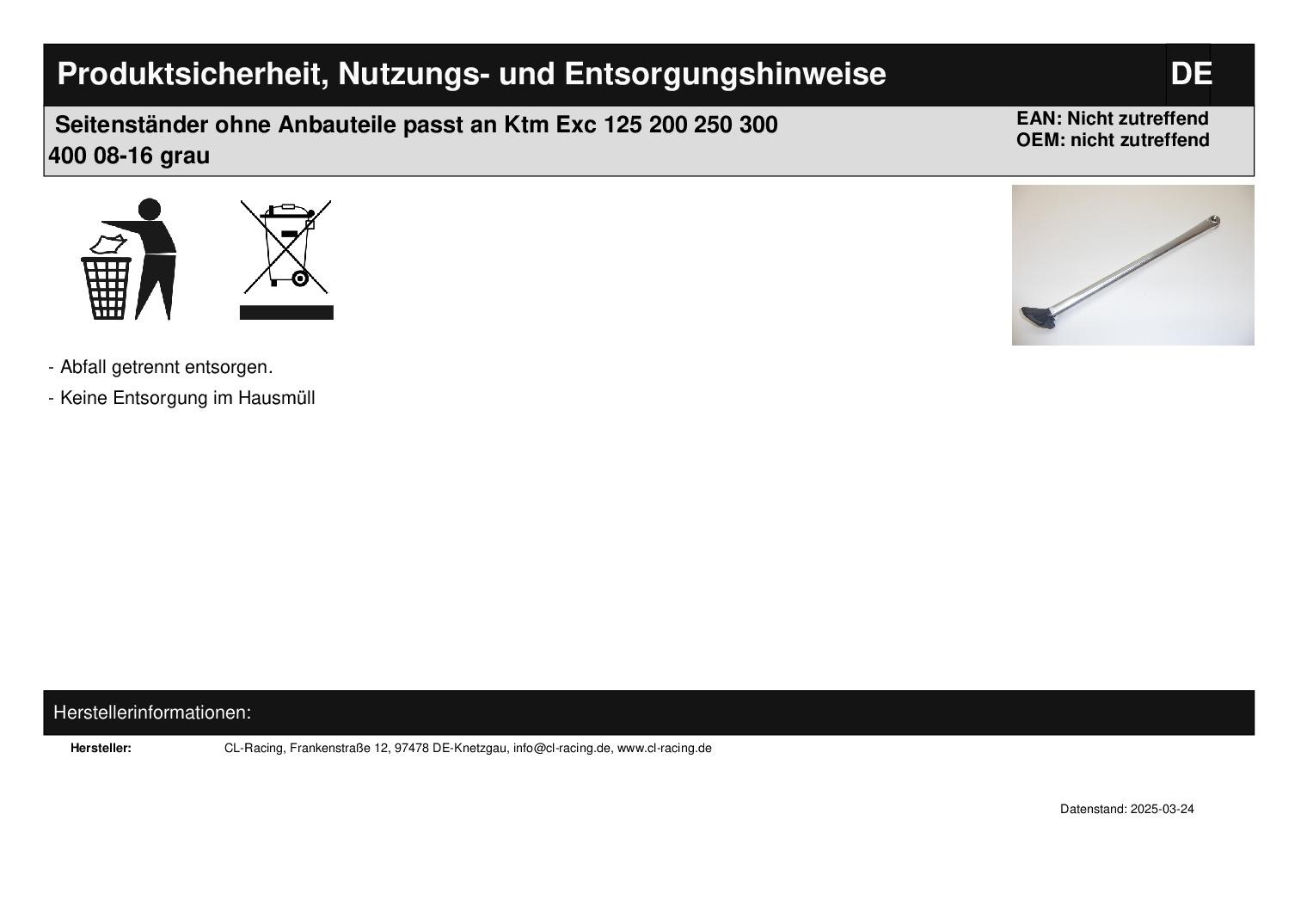 Titel: Seitenständer ohne Anbauteile passt an Ktm Exc 125 200 250 300 400 08-16 grau