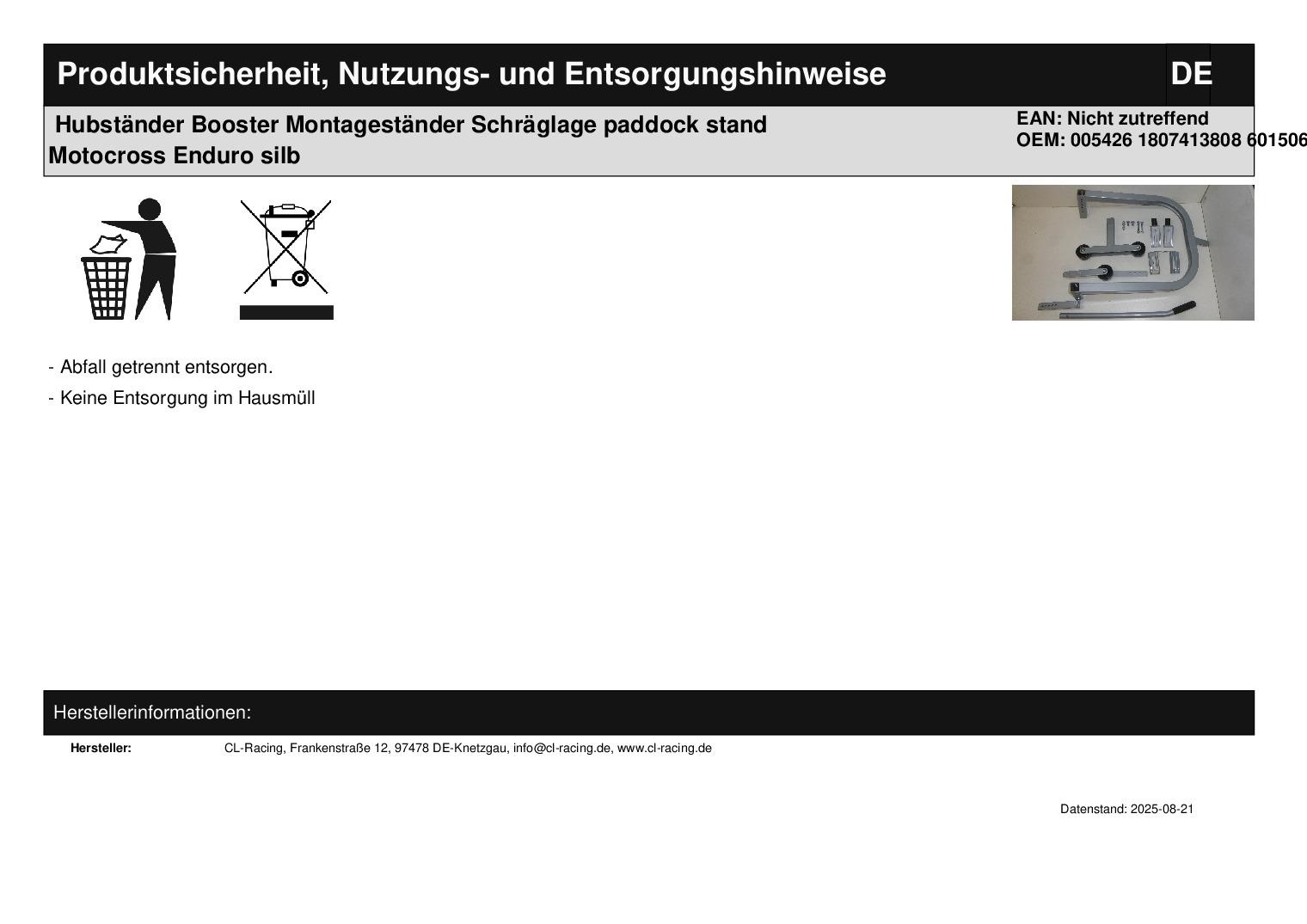 In dieser Auktion gibt es folgenden Artikel zu kaufen: Hubständer (siehe Foto) Hersteller: Booster Modell: unbekannt Bj.: unbekannt Lieferumfang: siehe Foto Artikelzustand: neu aus Geschäftsauflösung, mit Lagerspuren wie ein paar Kratzer; Zustand siehe Foto Bei Unklarheiten oder Fragen bitte erst E-Mail schreiben.